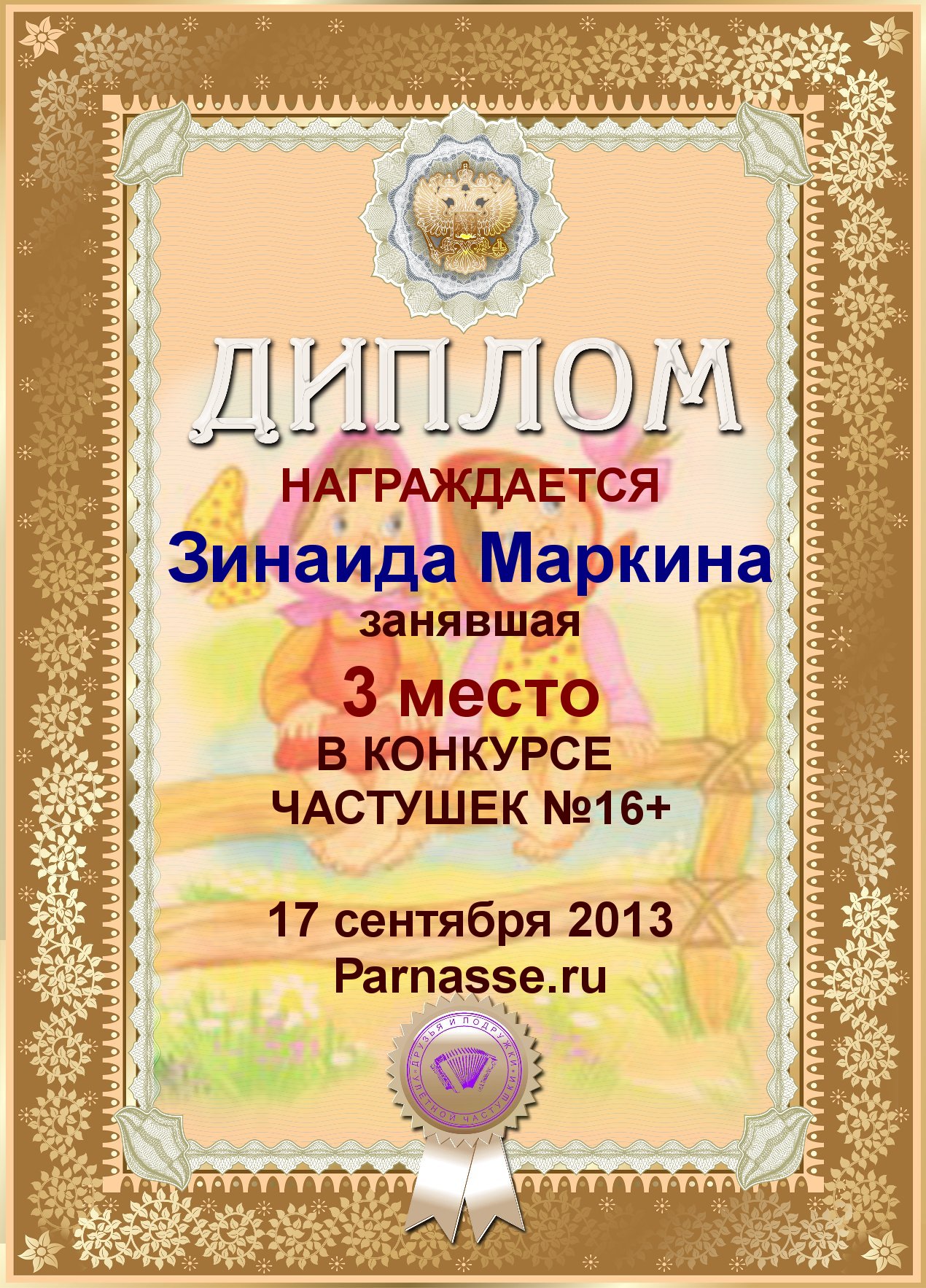 Диплом за 3 место в конкурсе "С юмором. о наболевшем №5!
