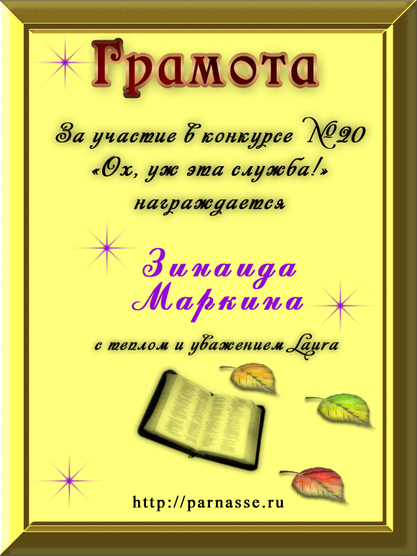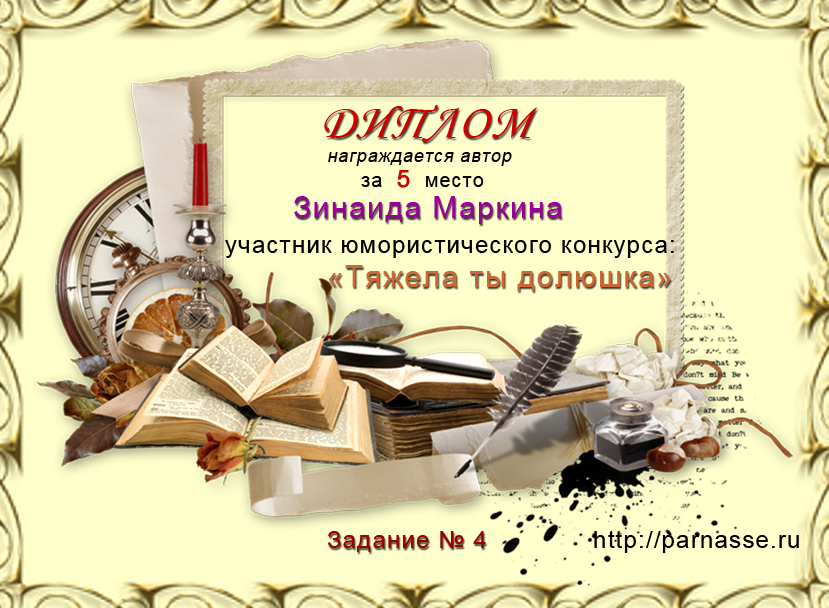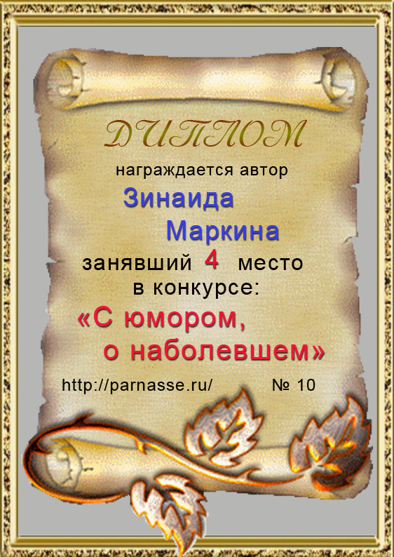 Диплом за 4 место в конкурсе " С юмором. о наболевшем"