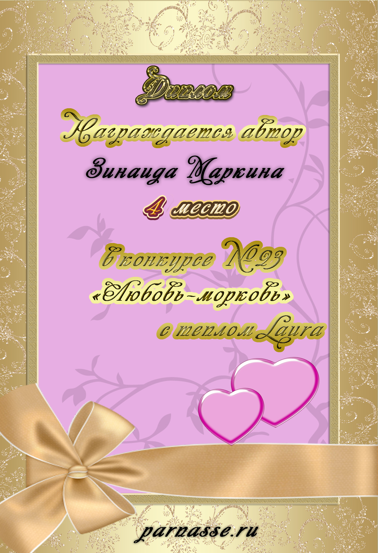 Диплом за 3 место в конкурсе "Дню всех Влюблённых посвящая"