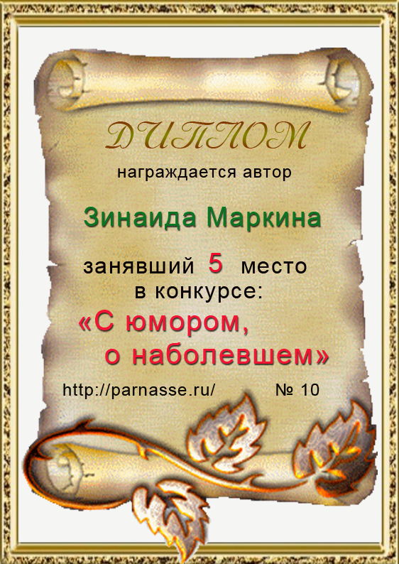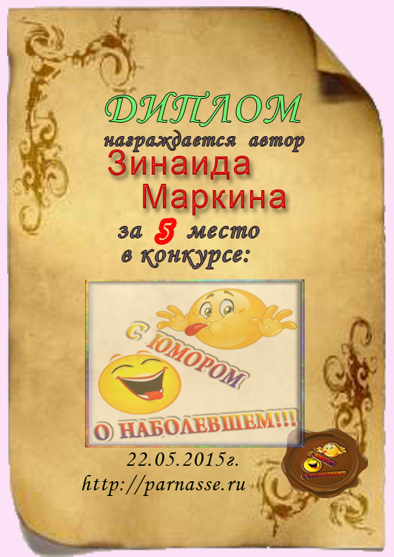 Диплом за 5 место в конкурсе " С юмором. о наболевшем"