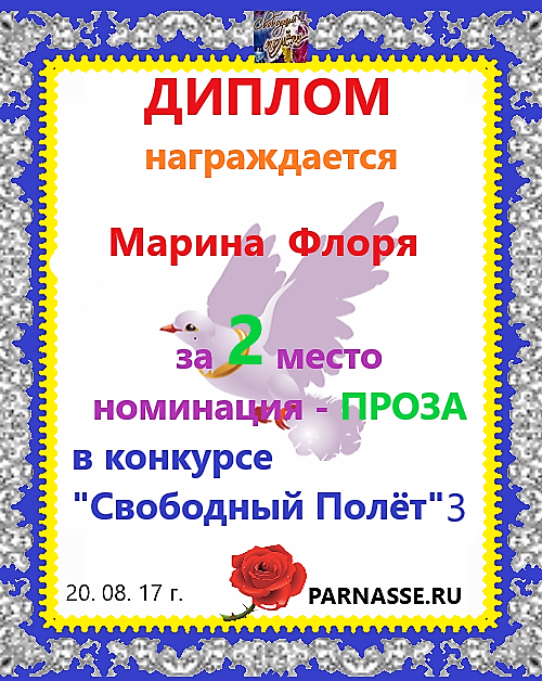 ![]() ![]() за 2 место в конкурсе "Свободный Полёт"№3 ПРОЗА