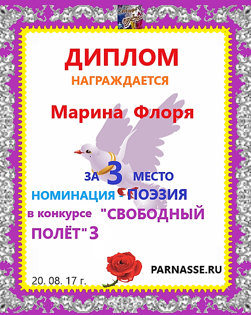 ![]() за 3 место в конкурсе "Свободный Полёт" № 3 ПОЭЗИЯ