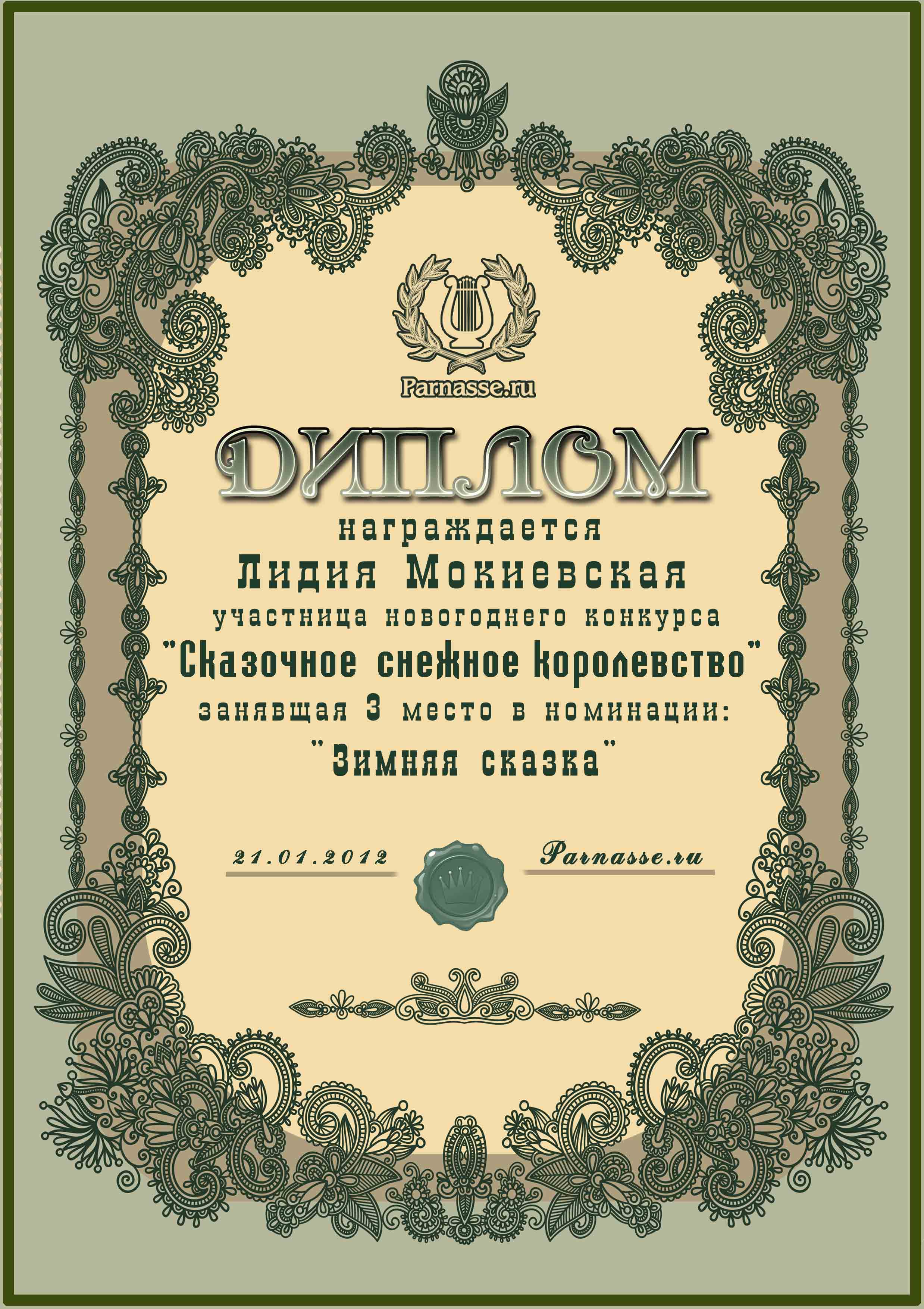 Диплом за 3 место в конкурсе "Сказочное снежное королевство!"