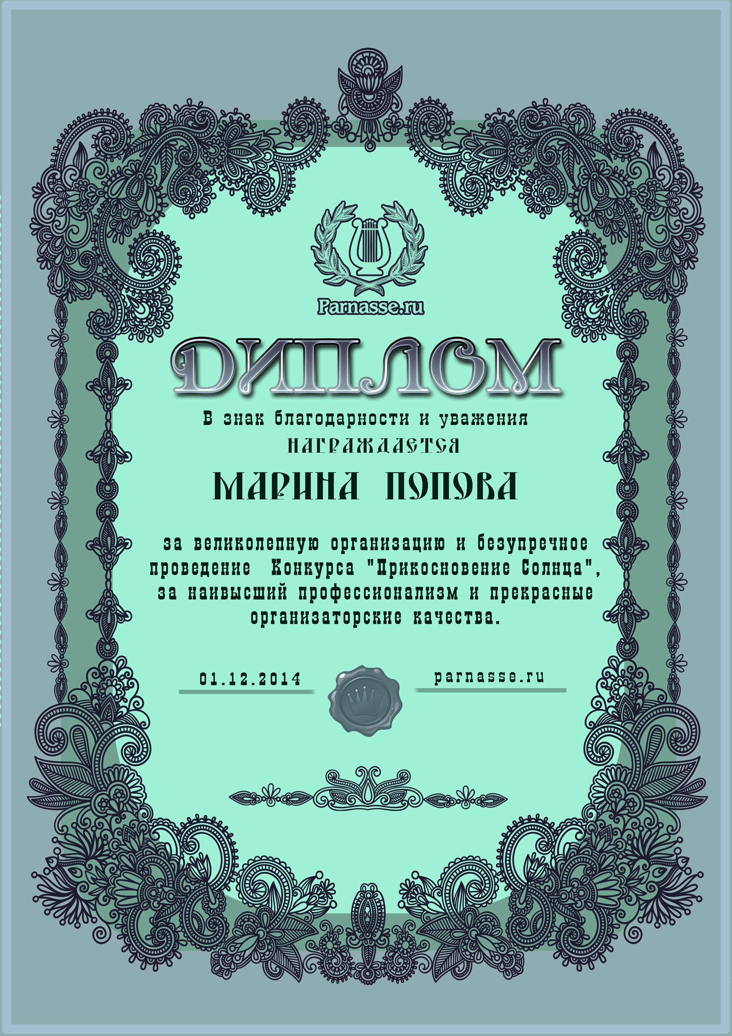 За проведение Конкурса «Прикосновение Солнца» - Поэзия