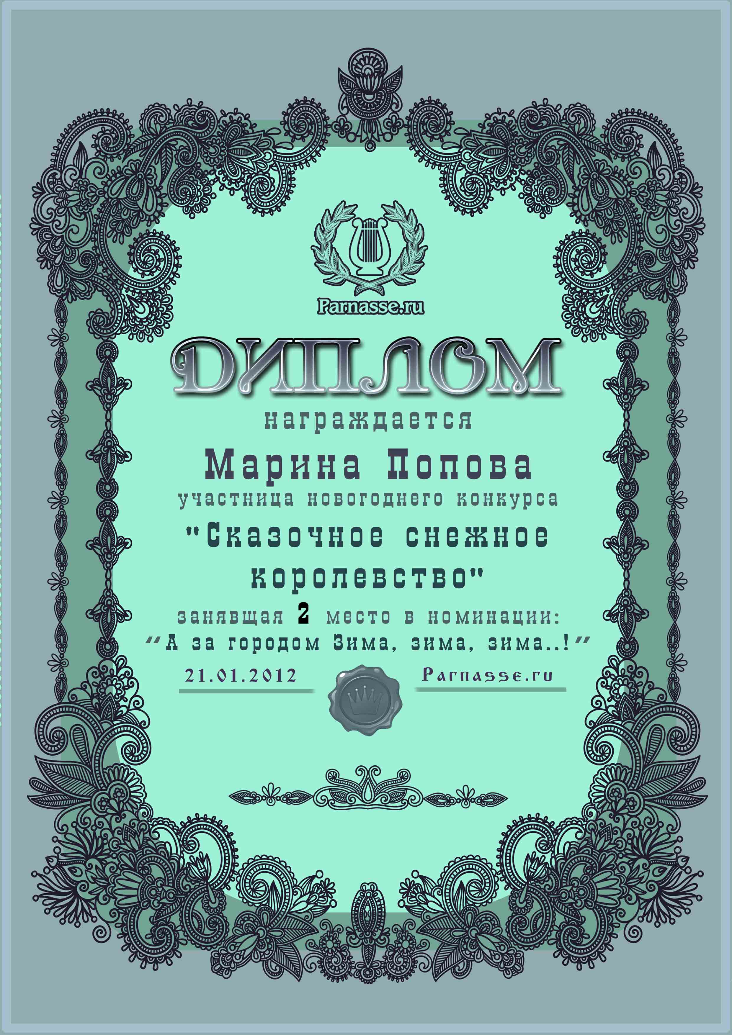 Диплом за 2 место в конкурсе "Сказочное снежное королевство!"