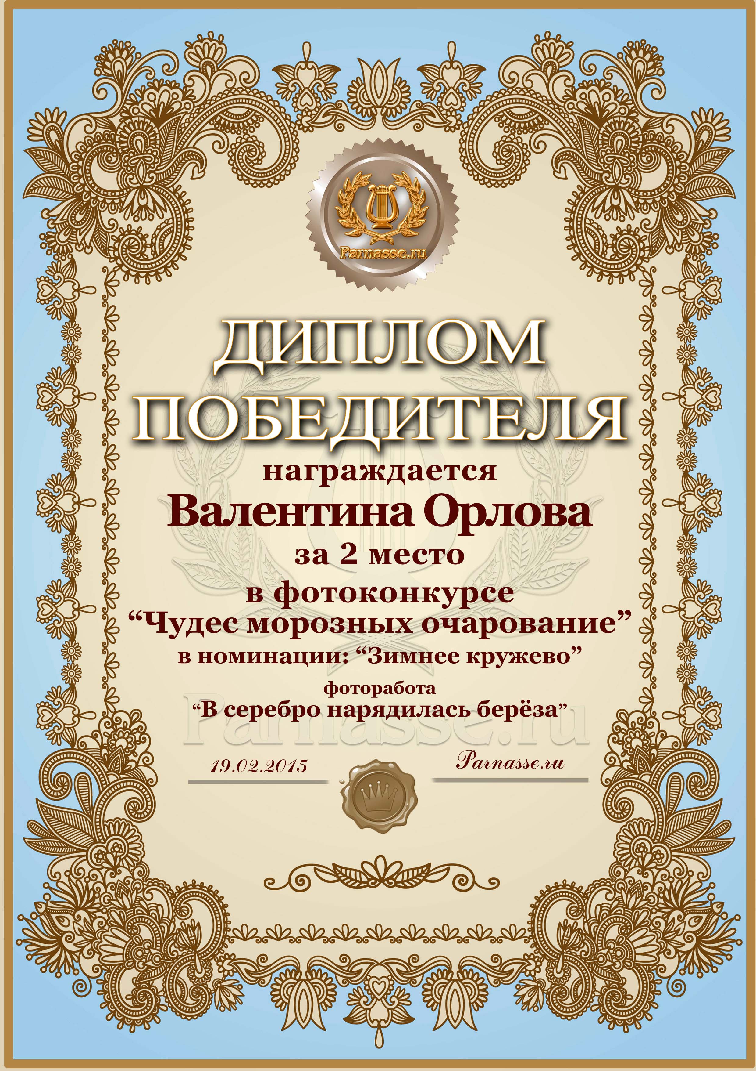 Диплом за 2 место в фотоконкурсе "Чудес морозных очарование"