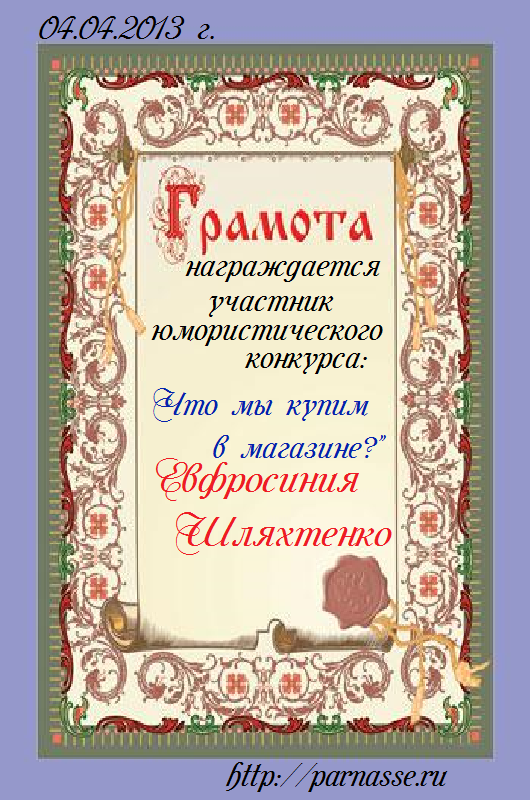Грамота за участие в 13 конкурсе
