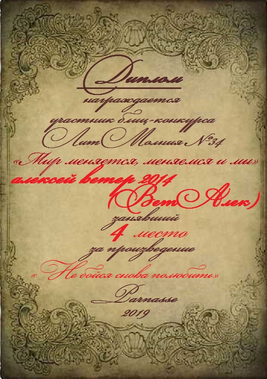 Четвёртое место в Блиц-конкурсе №34 " Мир меняется, меняемся и мы" за произведение «Не бойся снова полюбить ». Поздравляем!