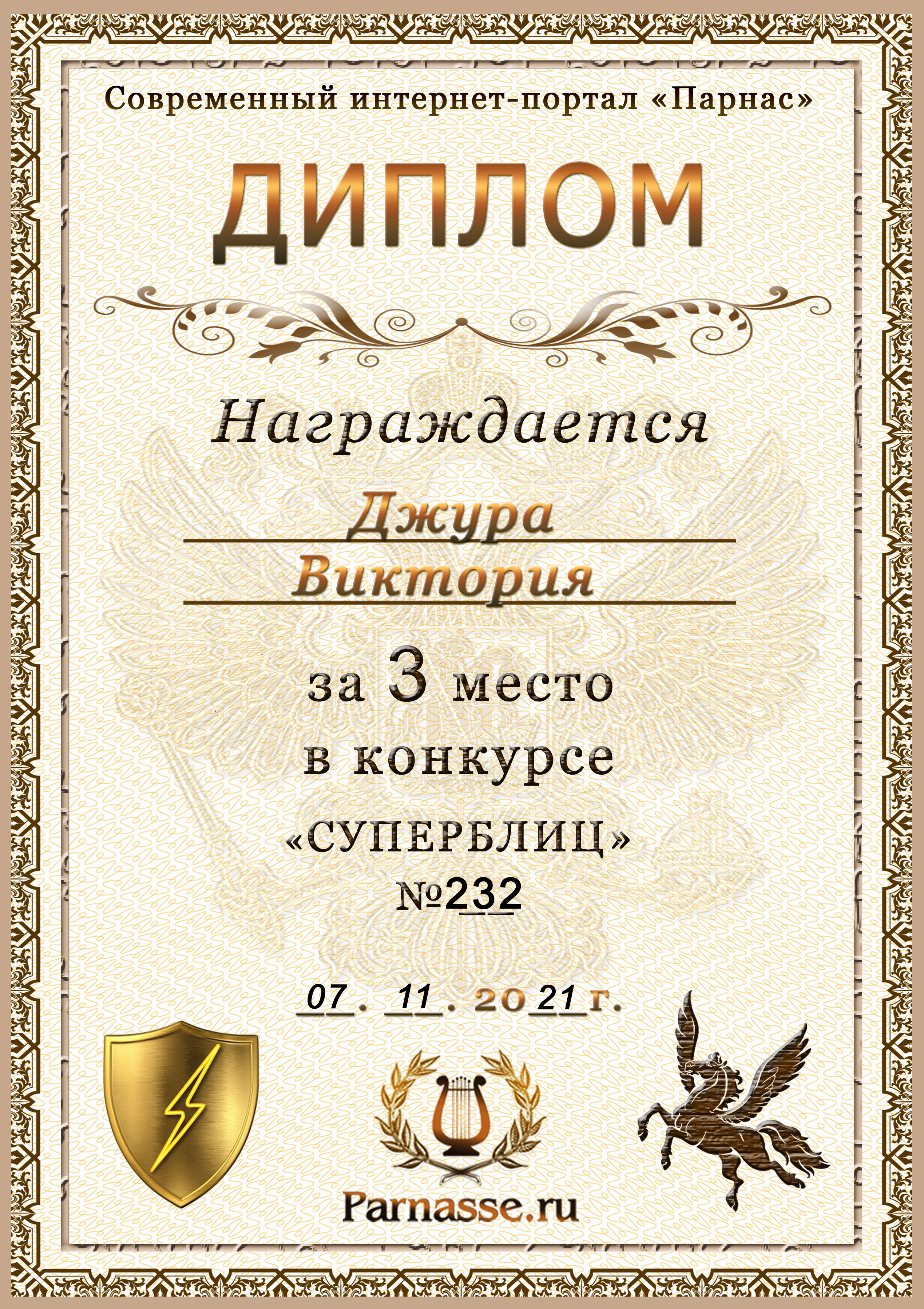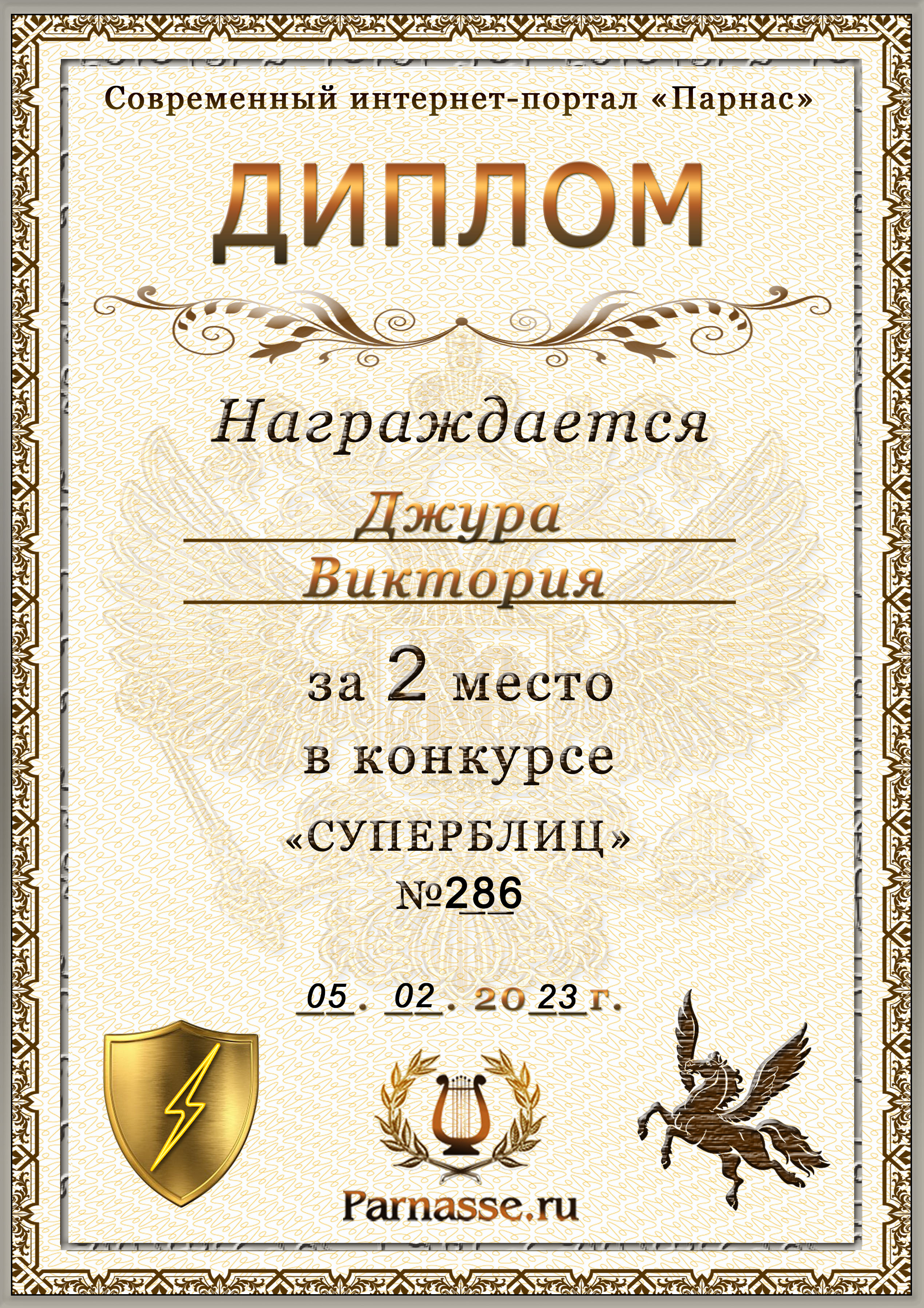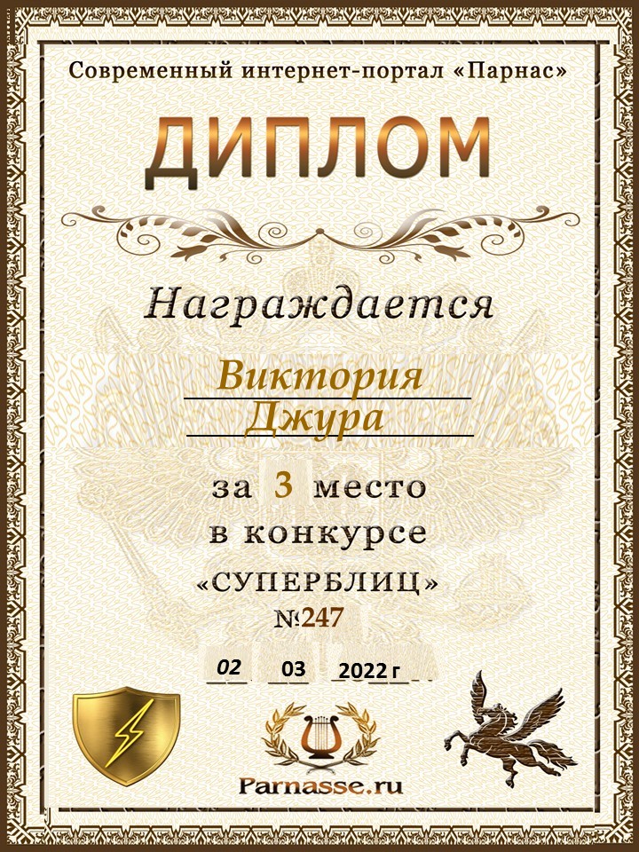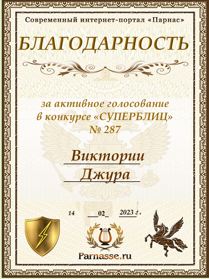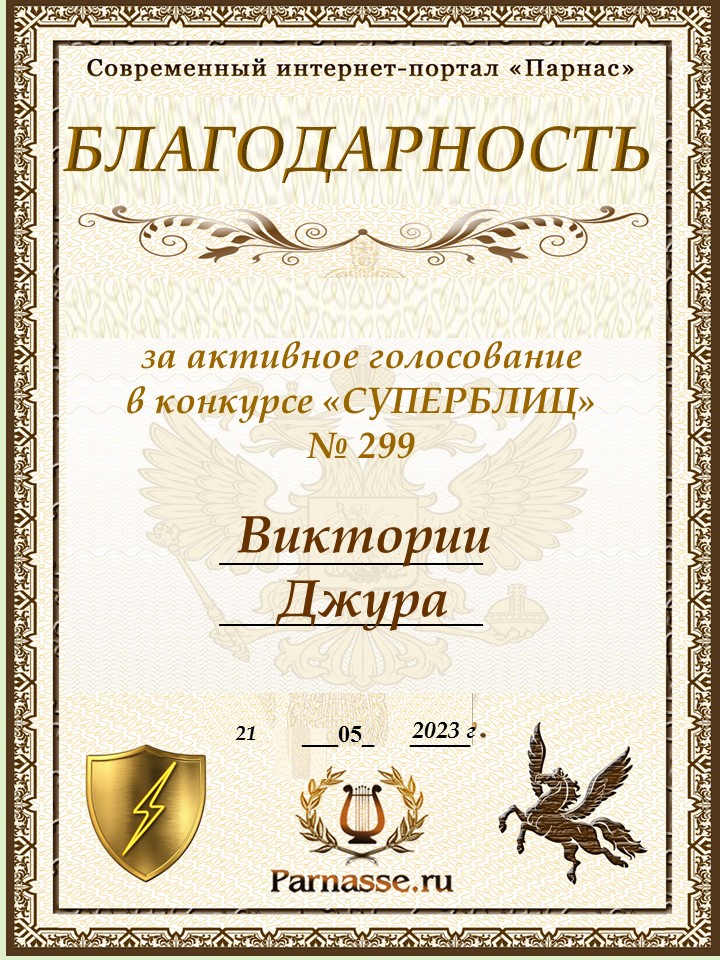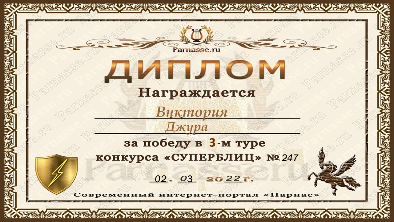 Диплом за победу во 2 туре в конкурсе СУПЕРБЛИЦА № 232! ПОЗДРАВЛЯЮ!