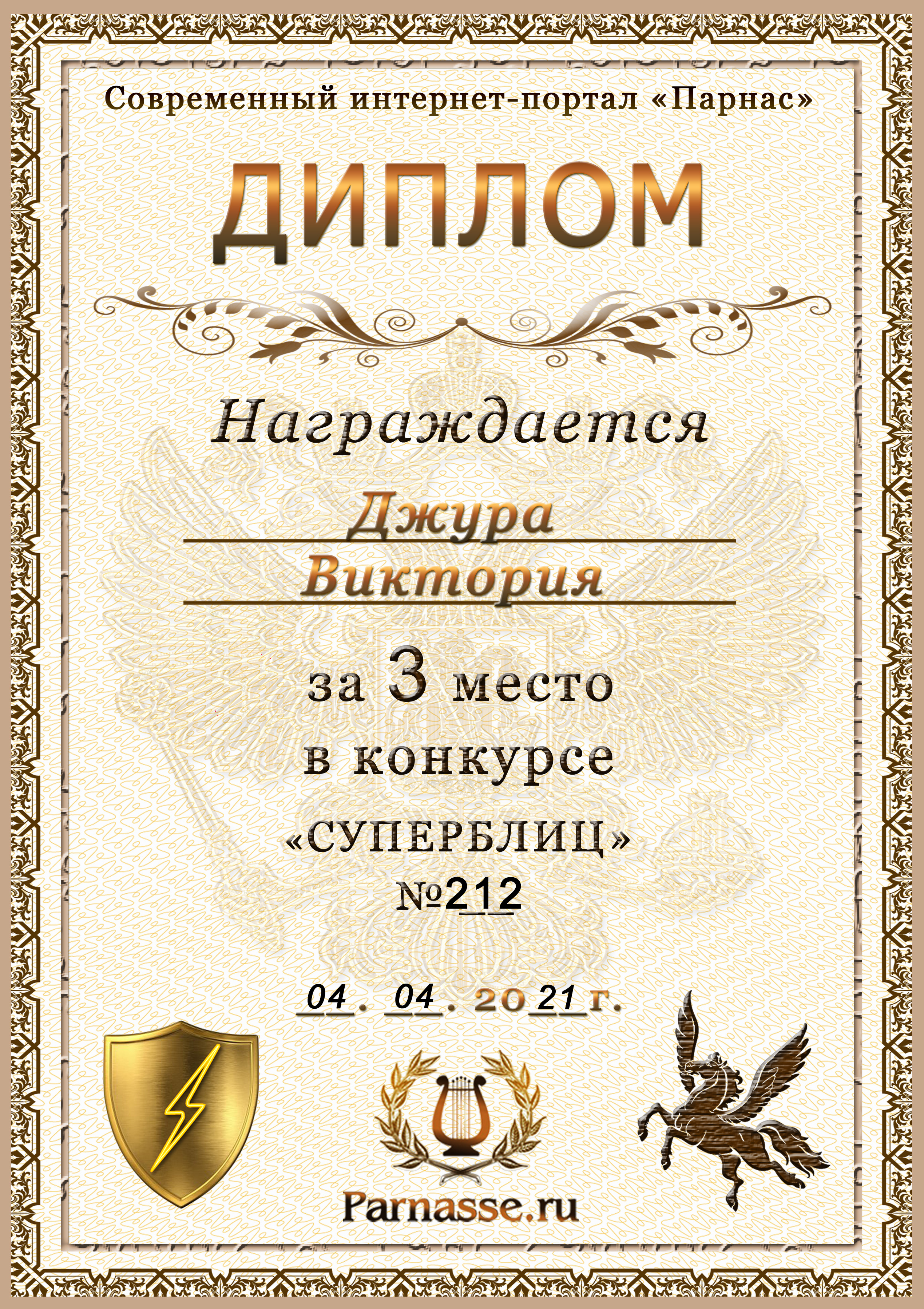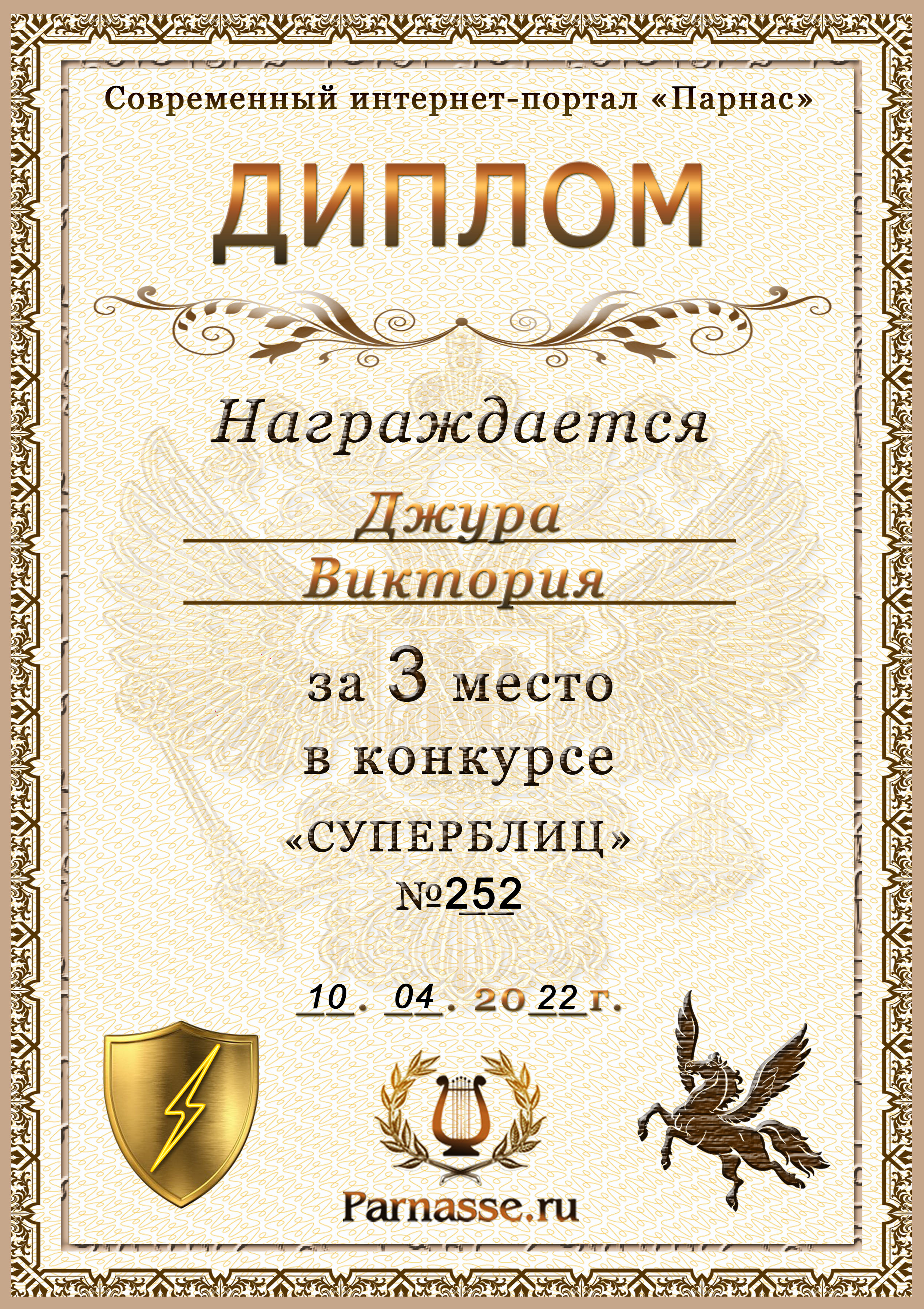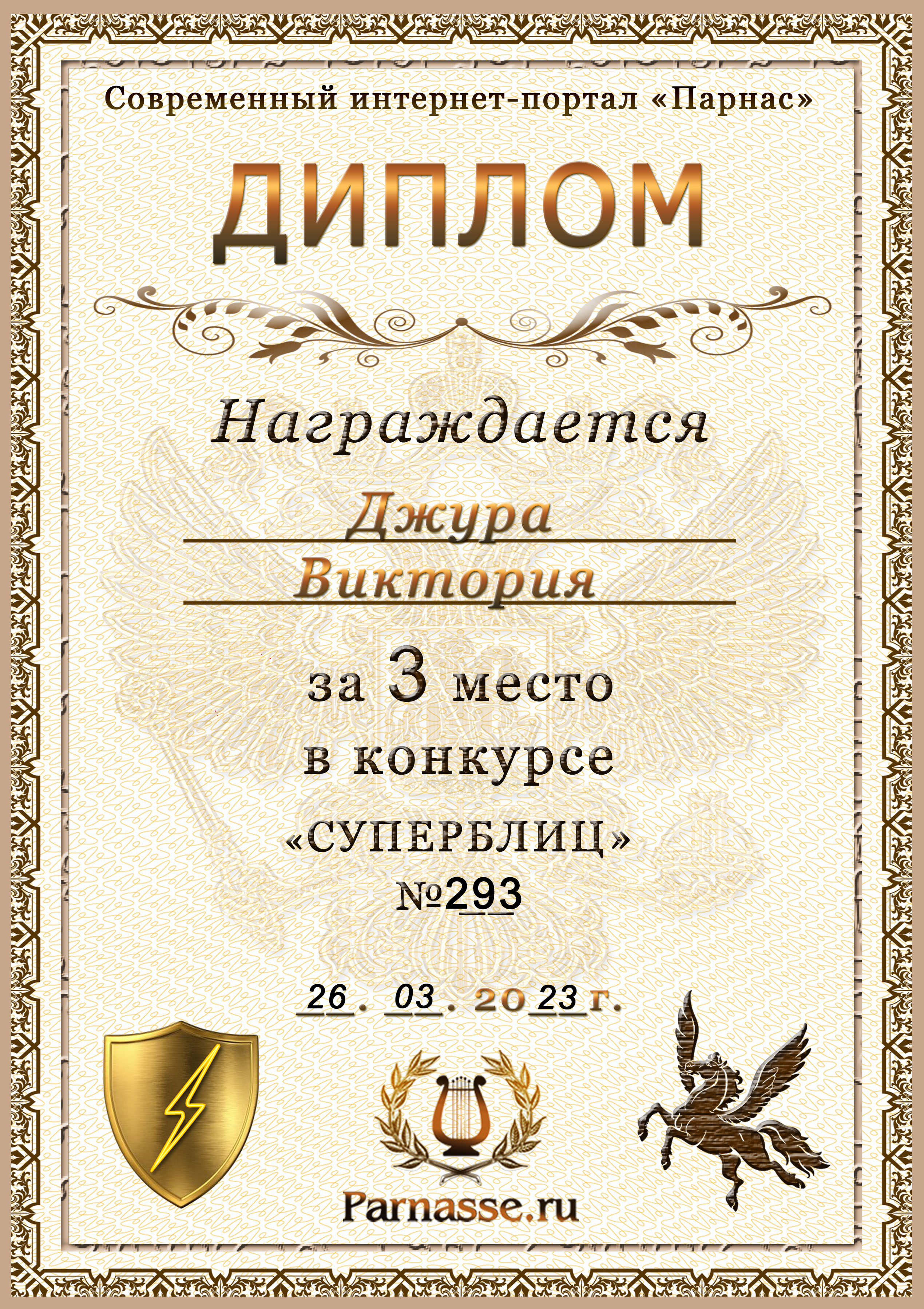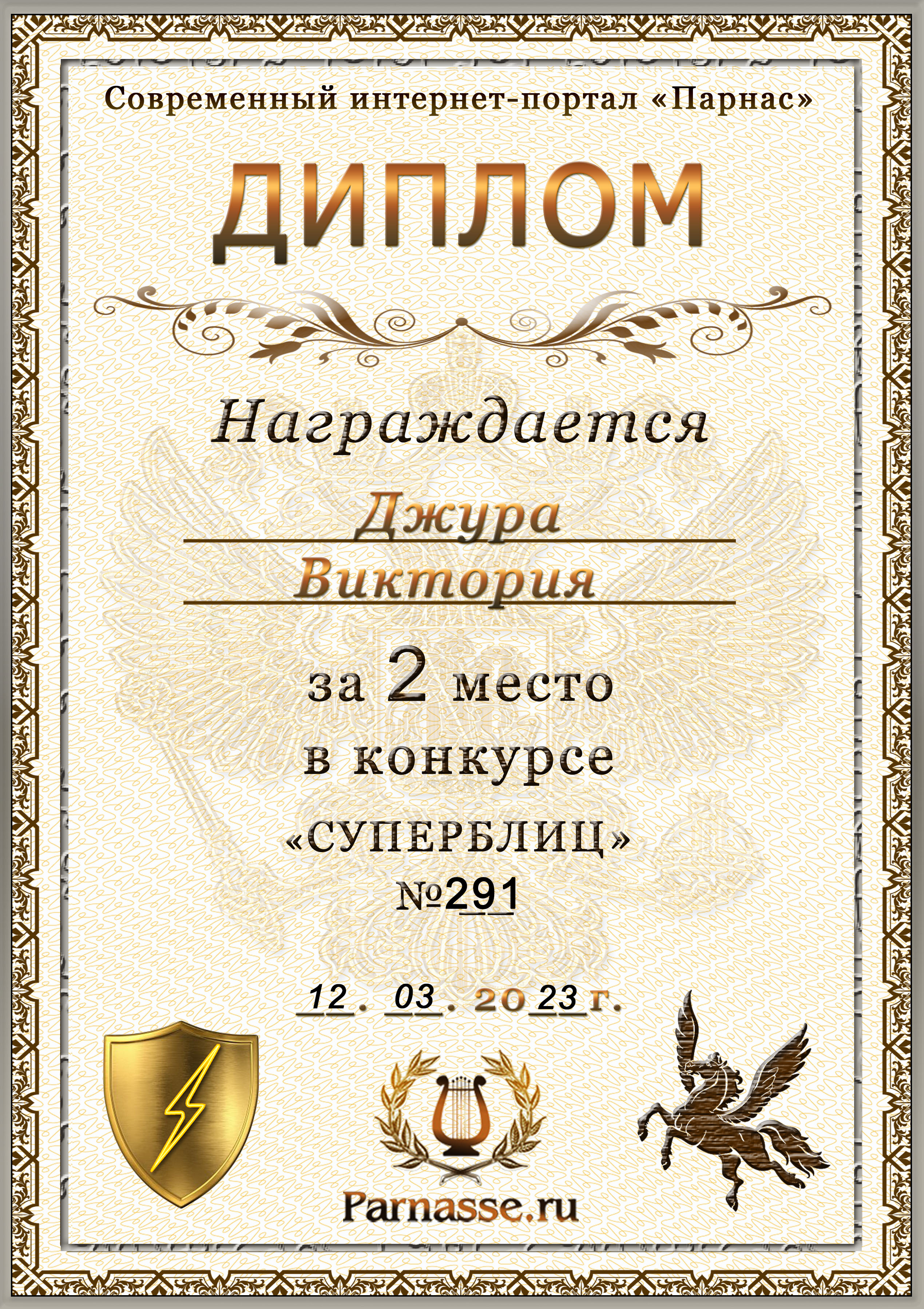 Диплом за победу во 2 туре в конкурсе СУПЕРБЛИЦА № 232! ПОЗДРАВЛЯЮ!