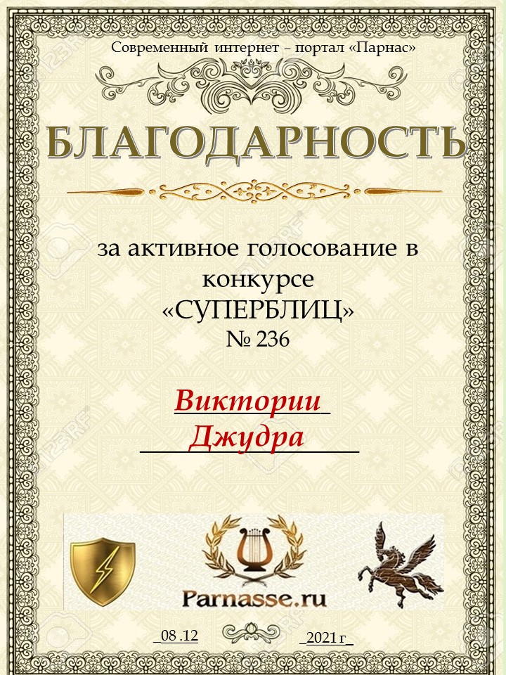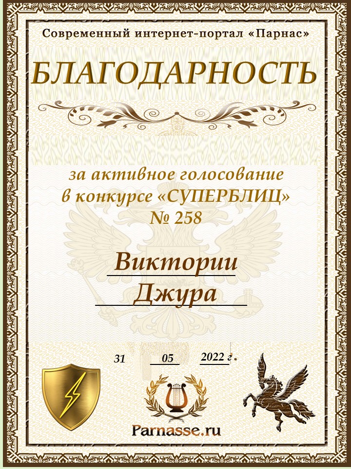 Благодарность за активное голосование в 258 конкурсе СУПЕРБЛИЦАСПАСИБО БОЛЬШОЕ!