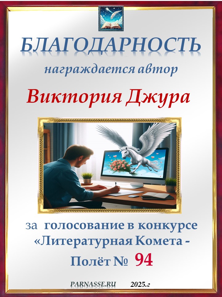 ![]() Медаль читателя в конкурсе "ЛитКомета - Полёт № 94"