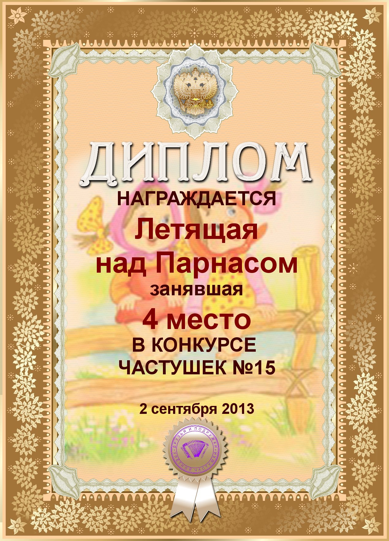 Похвальная грамота за 4 место в конкурсе лимериков № 40+ (19.08.2013 г.)