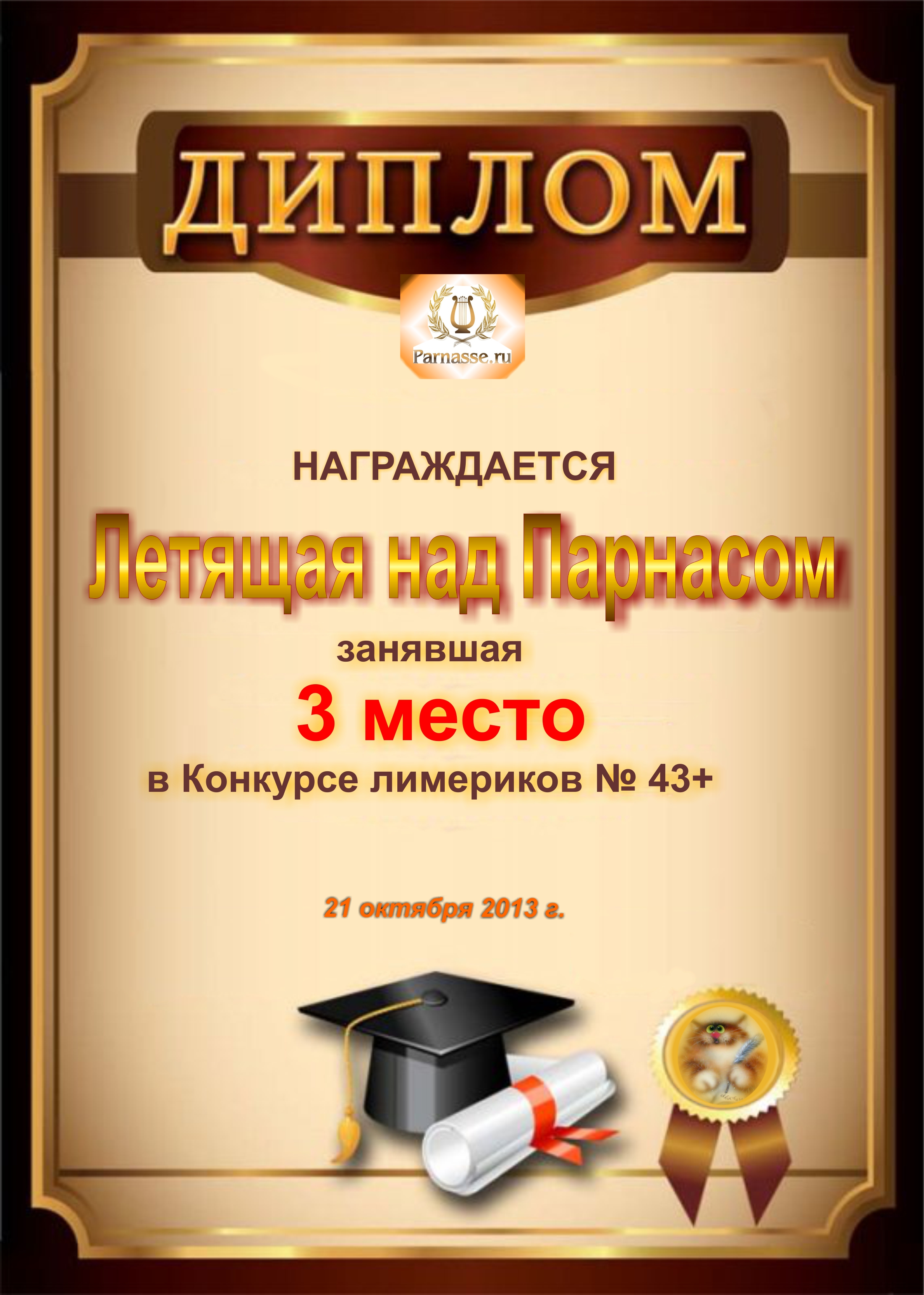 Диплом за победу и 2 место в дополнительной номинации конкурса лимериков № 39+ (29.07.2013 г.)