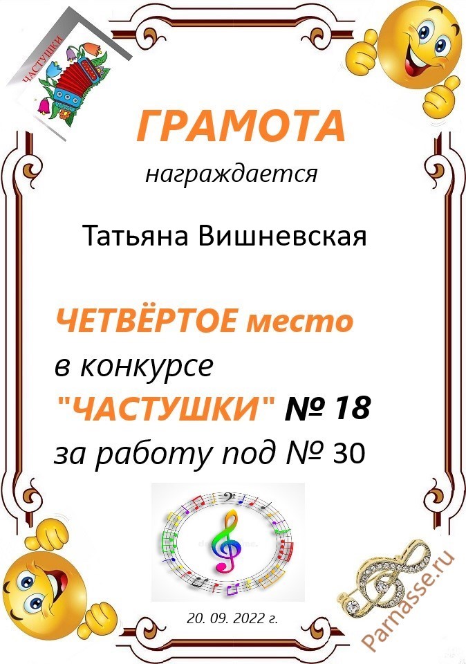 в конкурсе "ЧАСТУШКИ" № 18...за работу под № 30...4 место