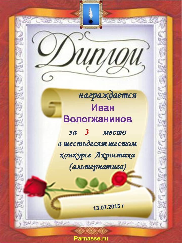Диплом победителю в конкурсах Акростиха в связи с пятилетием конкурса Акростиха!