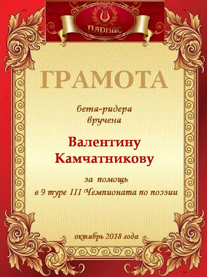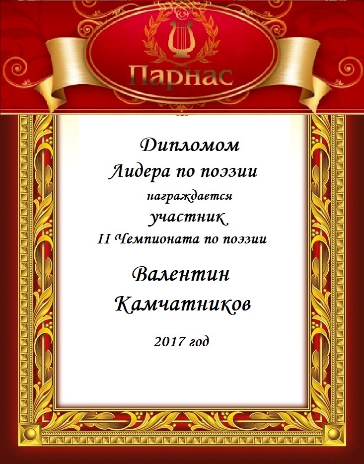 ![]() Золотой Кубок "1 тура II Поэтического чемпионата Парнаса"