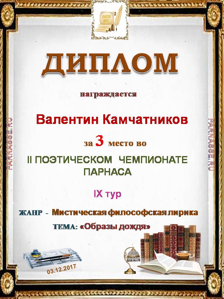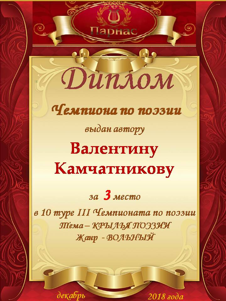 Поздравляем с занятым 3 местом в 10 туре III Чемпионата по Поэзии!