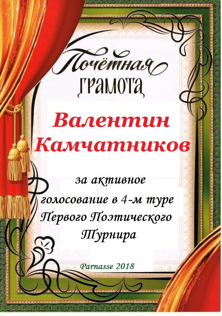 За активное участие в обсуждении конкурсных произведений 4-го тура Первого Поэтического Турнира «Я посвящаю осени сонет». Спасибо за поддержку!