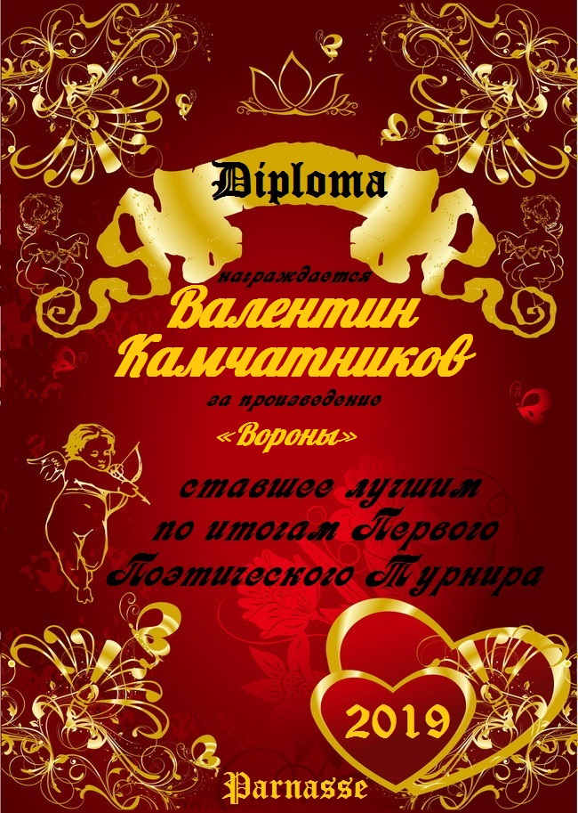 За произведение «Вороны», получившие максимальные судейские оценки (по 10 баллов от всех судей, включая баллы от Главного судьи) по итогам Первого Поэтического Турнира. Поздравляем!