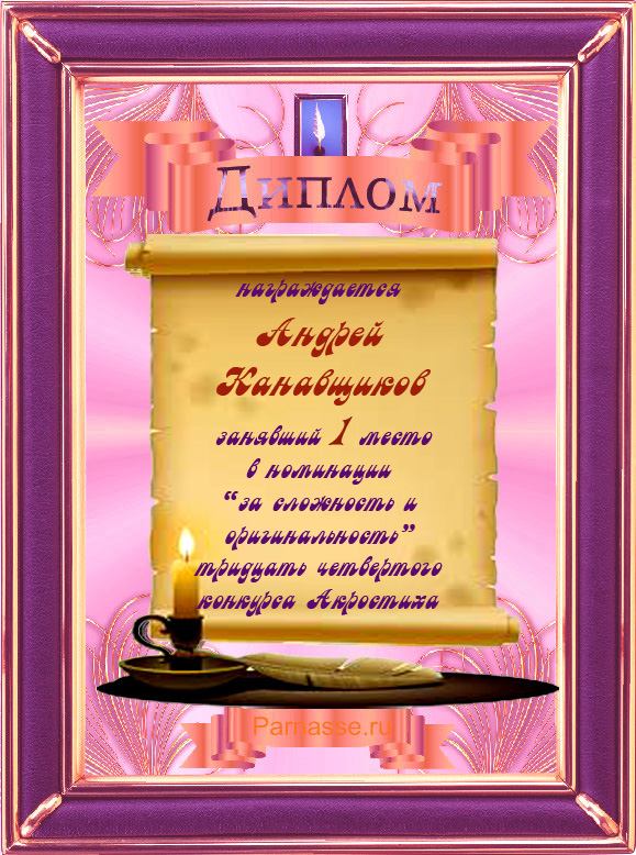 Диплом за победу в 34 конкурсе АКРОСТИХА (Дополнительная номинация «За сложность и оригинальность»)! ПОЗДРАВЛЯЮ!