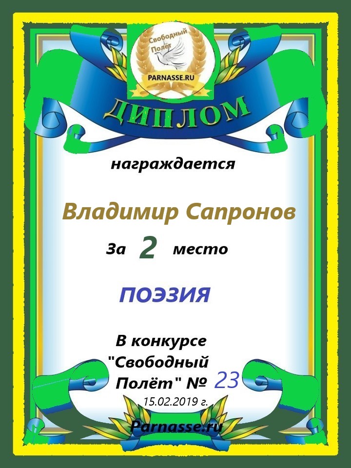 Пятое место в 3-м туре Второго Поэтического Турнира "Любовь многогранна" за произведение «Под лёгкой крышей». Поздравляем!