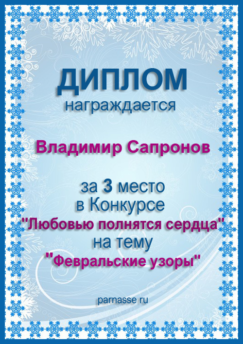 Лауреат I-й степени Православной ЛитСтраницы, Тема №3 "За семью возжгу свечу". Номинация ПОЭЗИЯ.
