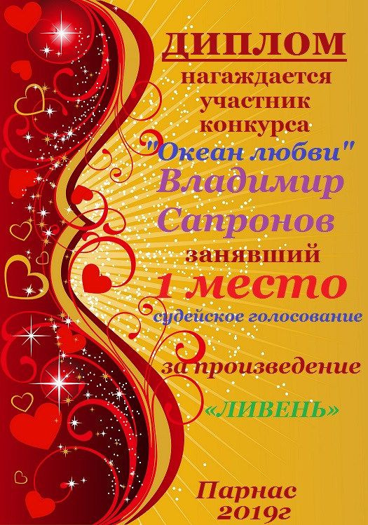 Первое место в конкурсе "Океан любви", судейское голосование. Поздравляем с прекрасной победой!