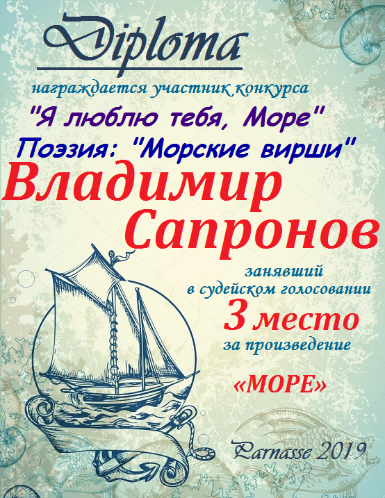 Третье место в конкурсе " Морские вирши", судейское голосование. Поздравляем с прекрасной победой!