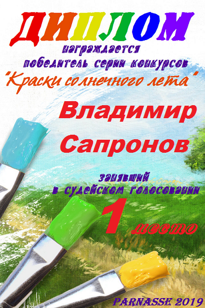 Первое место по итогам серии летних конкурсов " Краски солнечного лета", судейское голосование. Поздравляем с прекрасной победой!