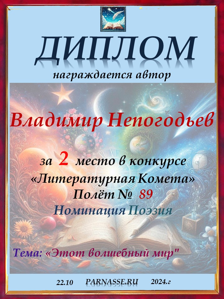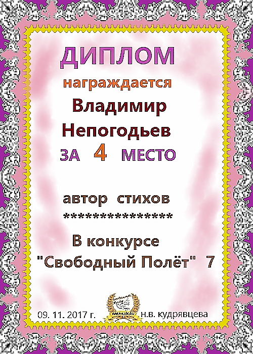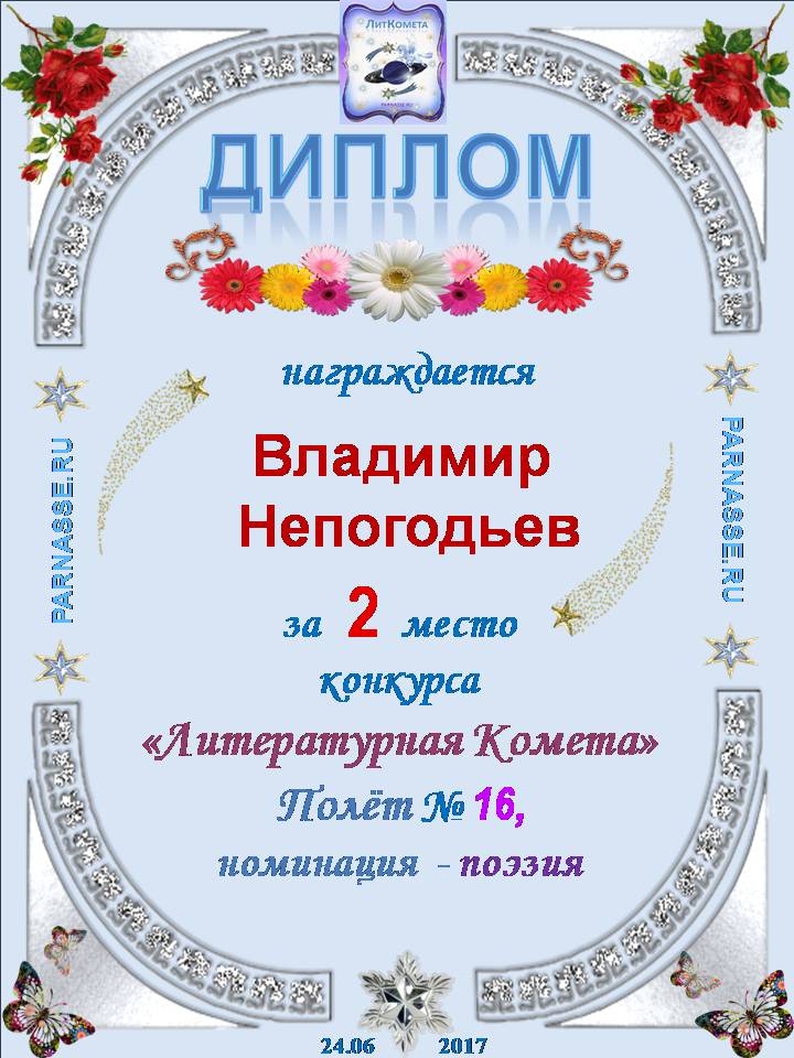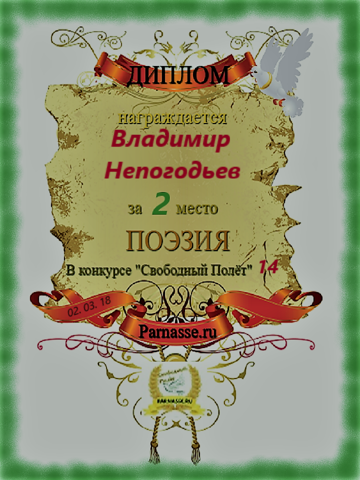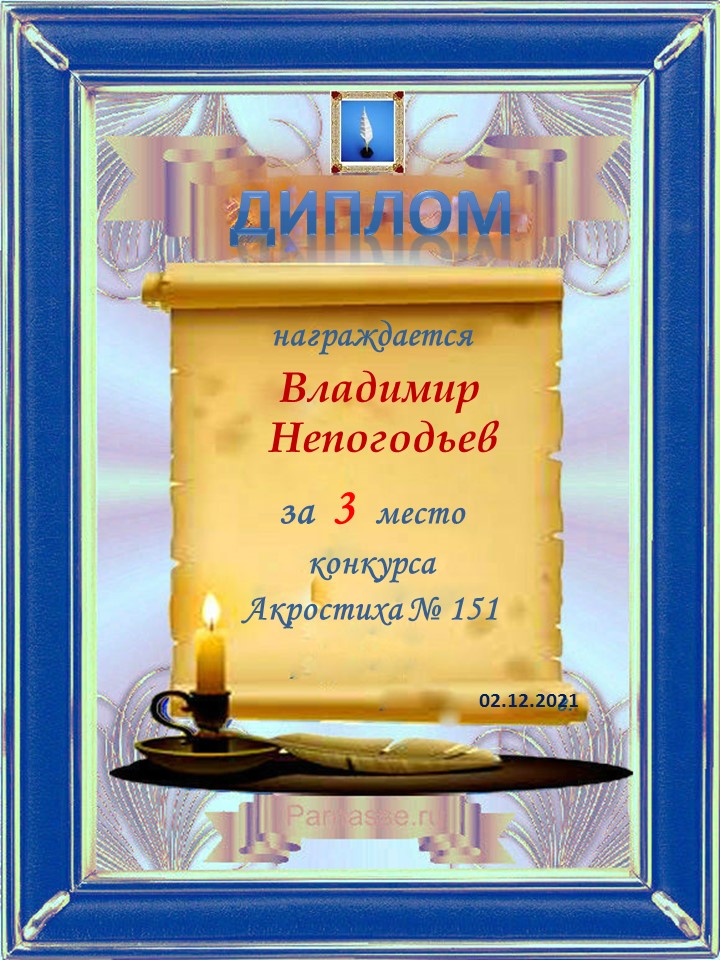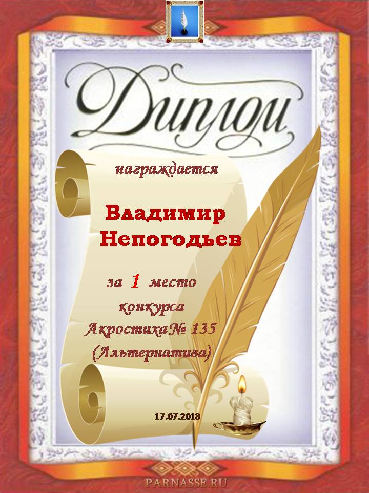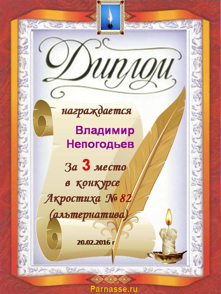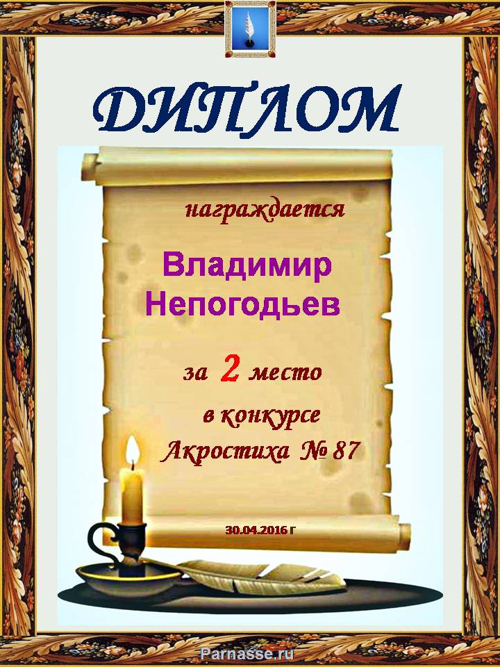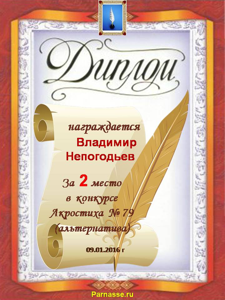 Диплом за 2 место в 119 конкурсе АКРОСТИХА (Альтернатива)! ПОЗДРАВЛЯЮ!