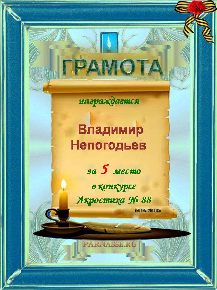 Грамота за 5 место в 131 конкурсе АКРОСТИХА (Альтернатива)! ПОЗДРАВЛЯЮ!