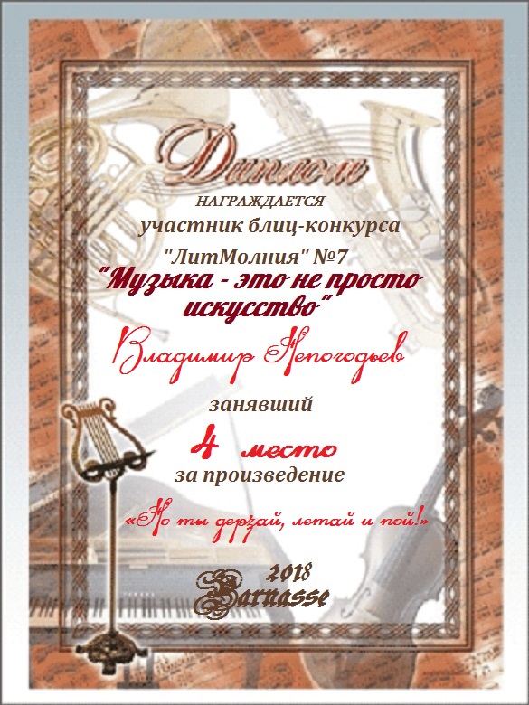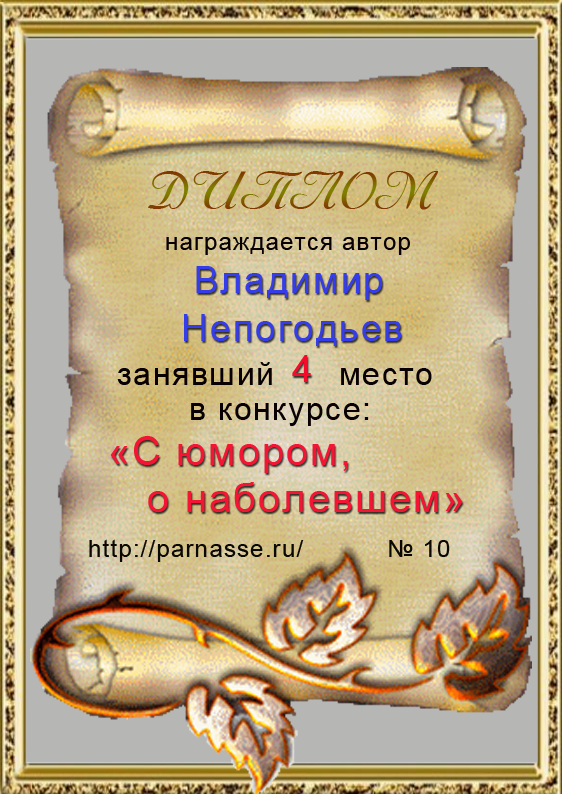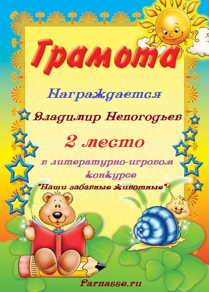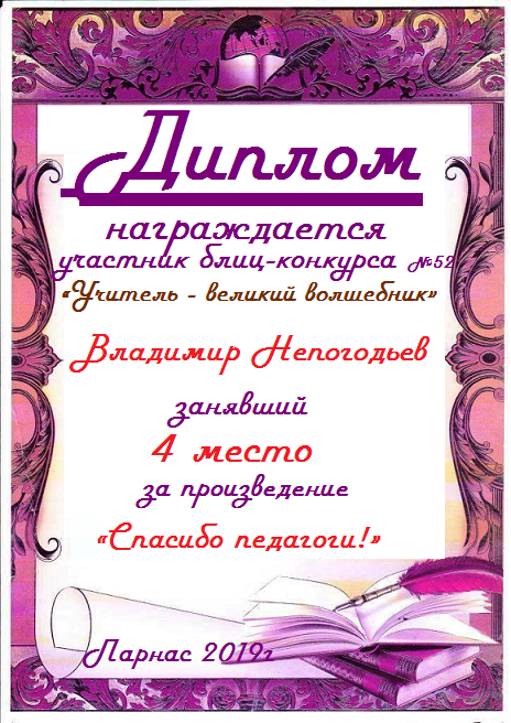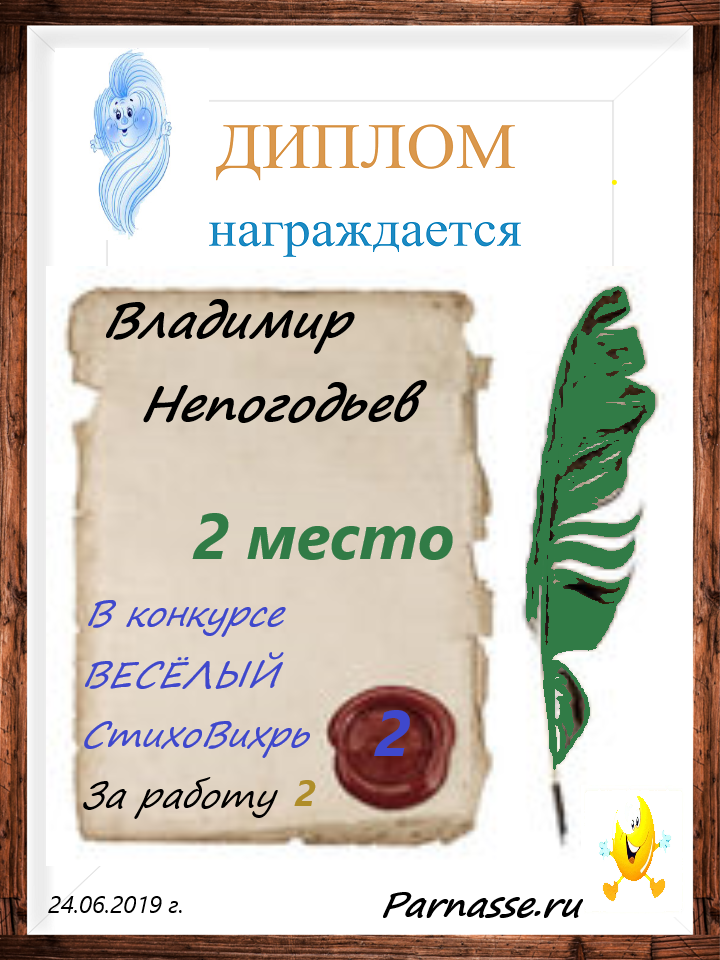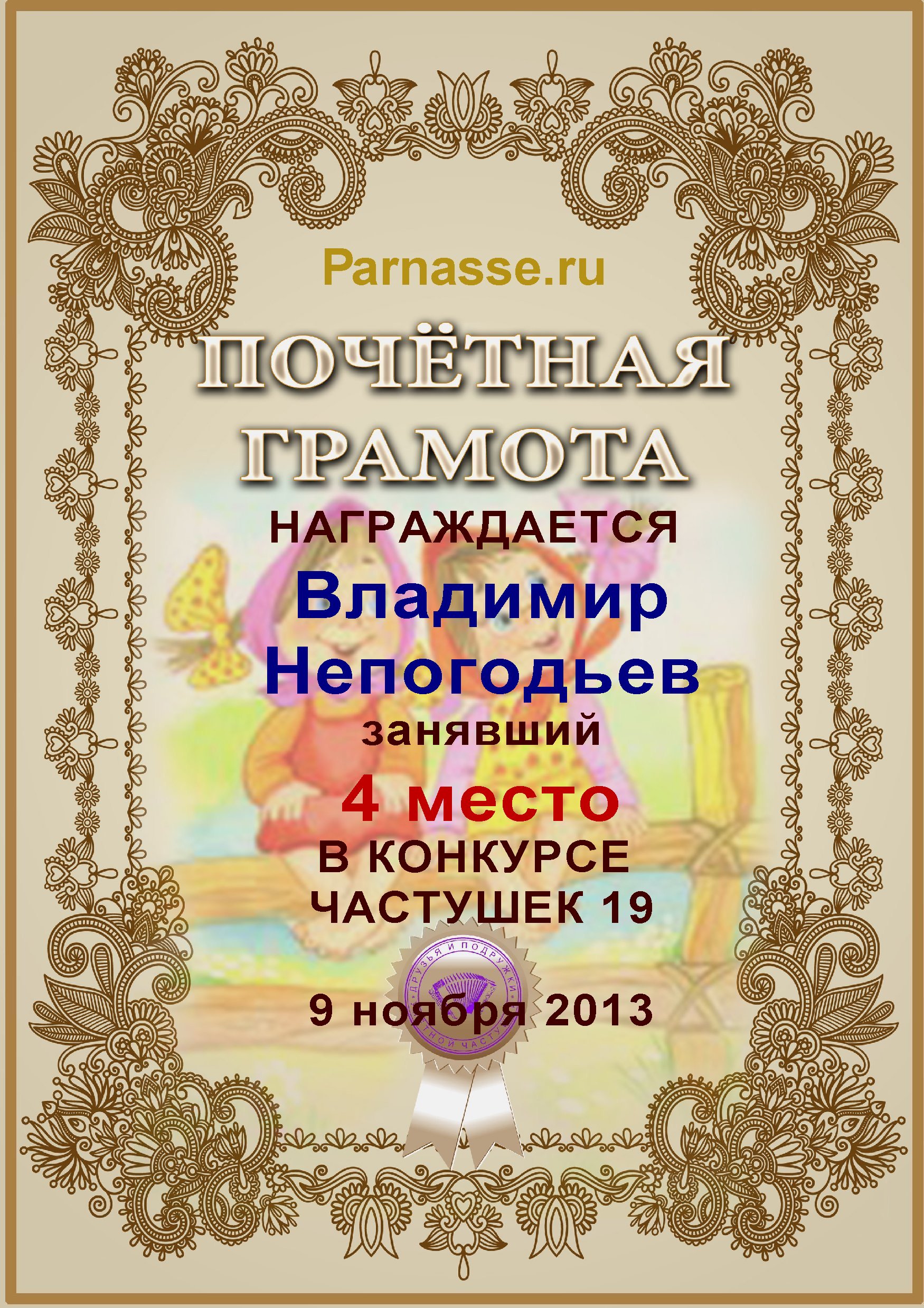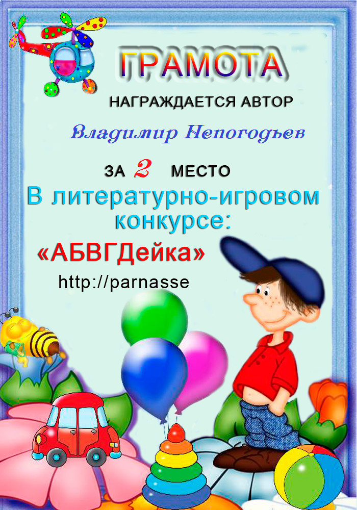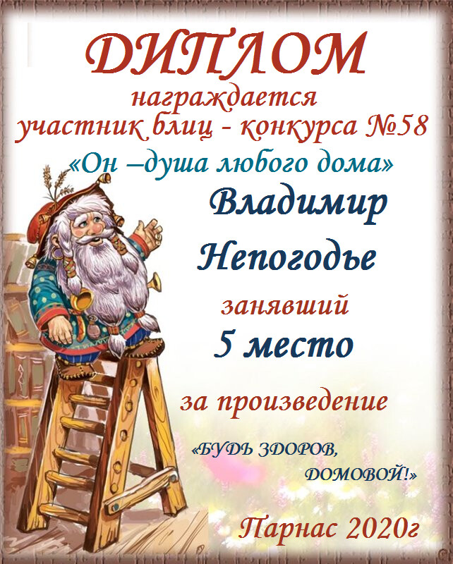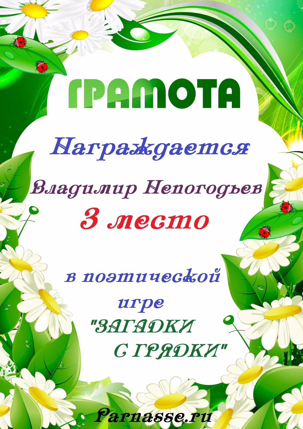 Грамота за 5 место в конкурсе частушек № 8++. Поздравляю, Владимир!
