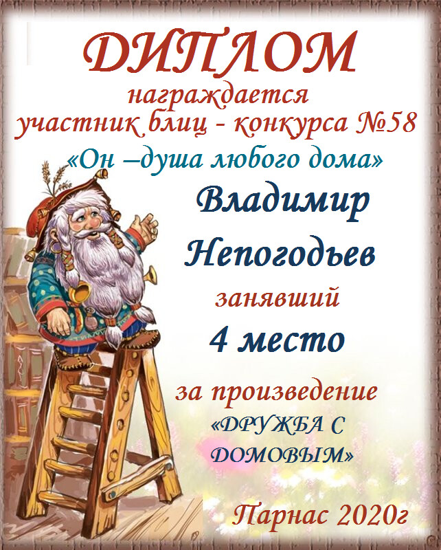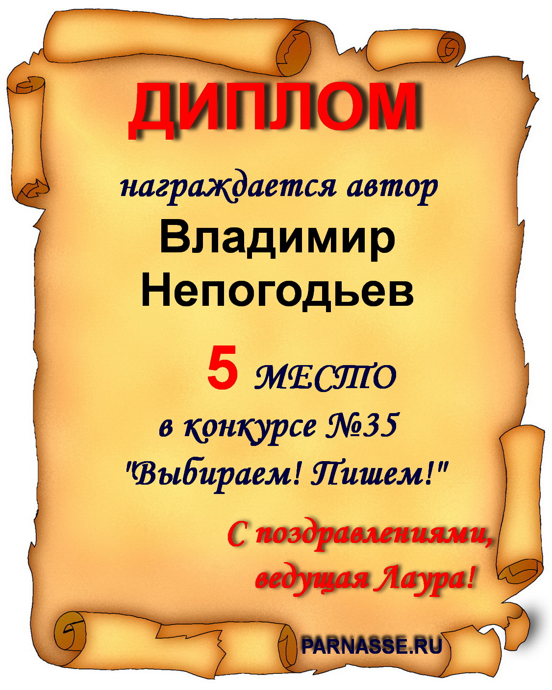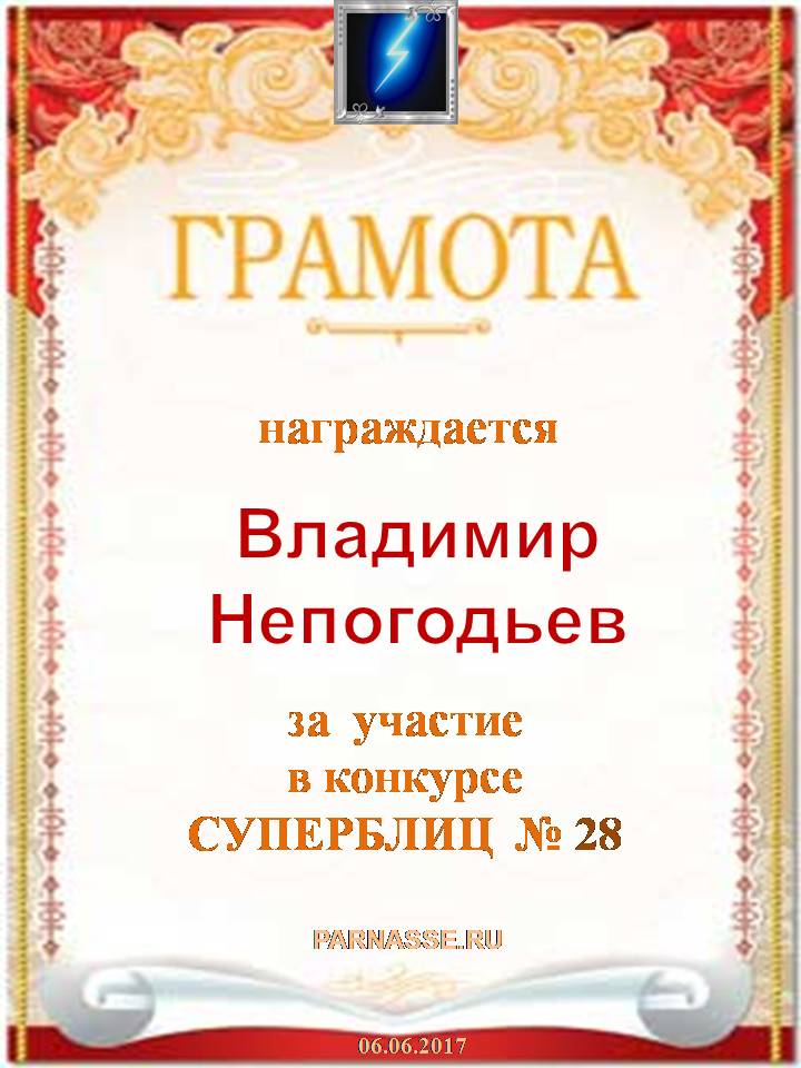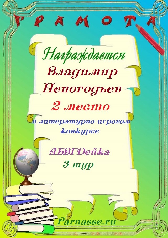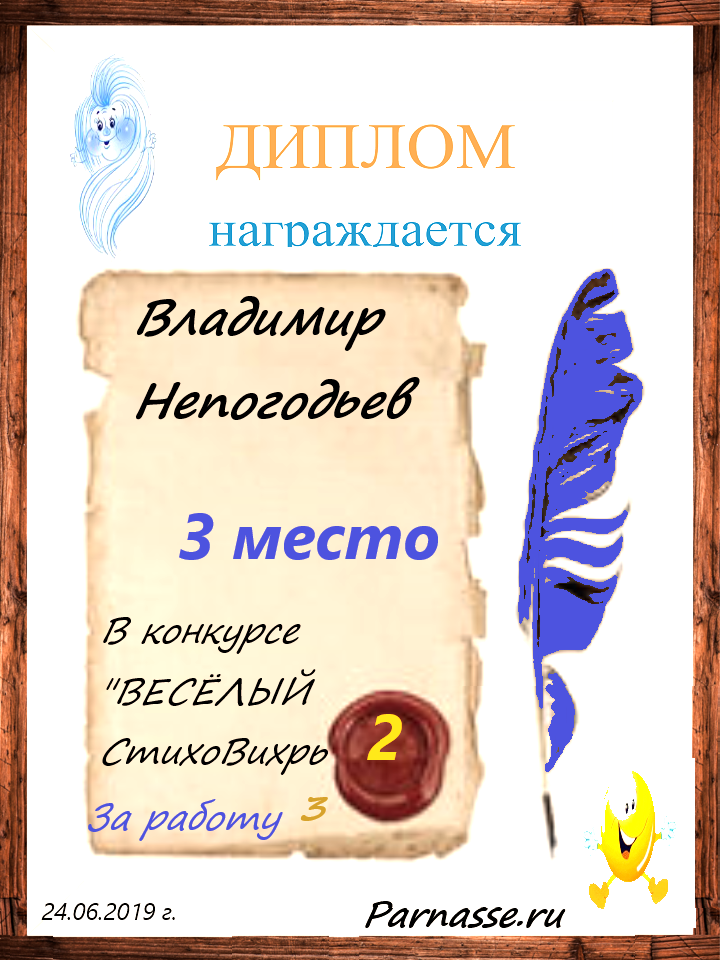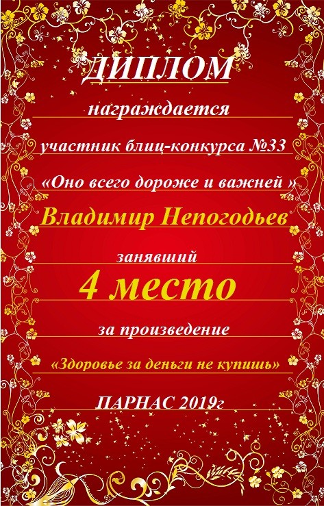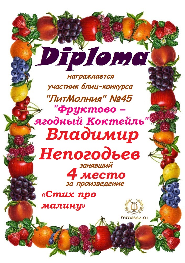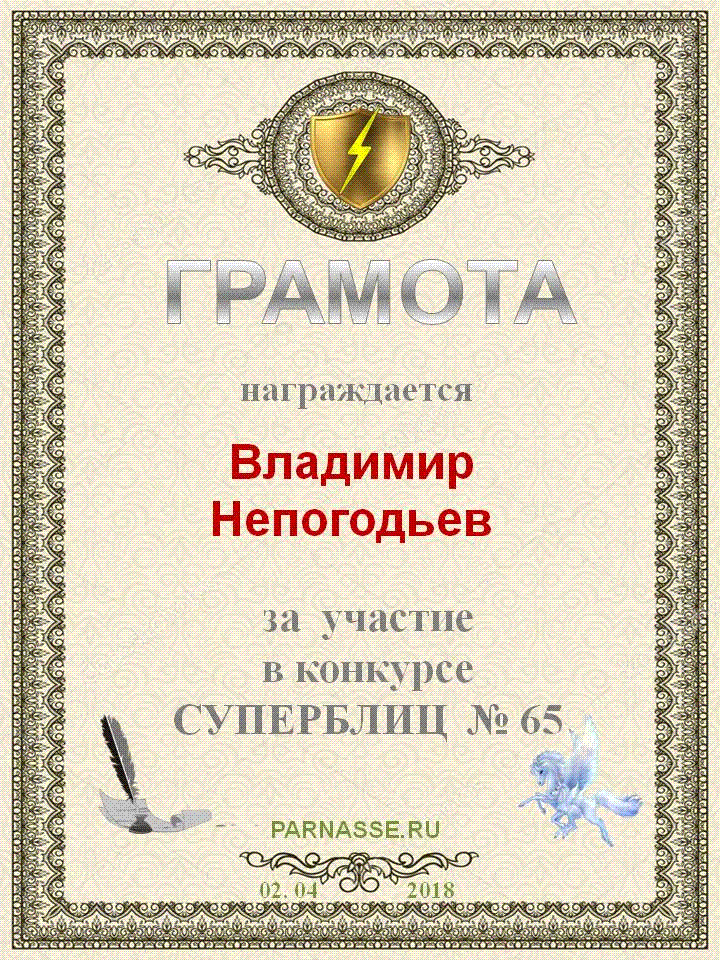Грамота за 5 место в конкурсе частушек № 8++. Поздравляю, Владимир!