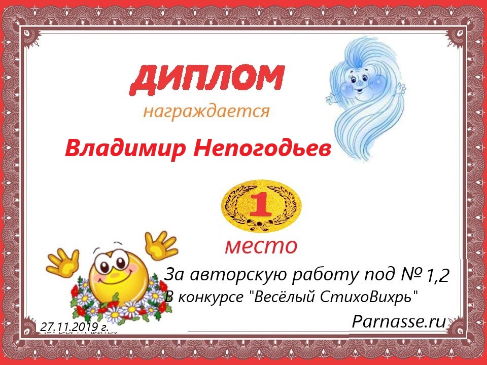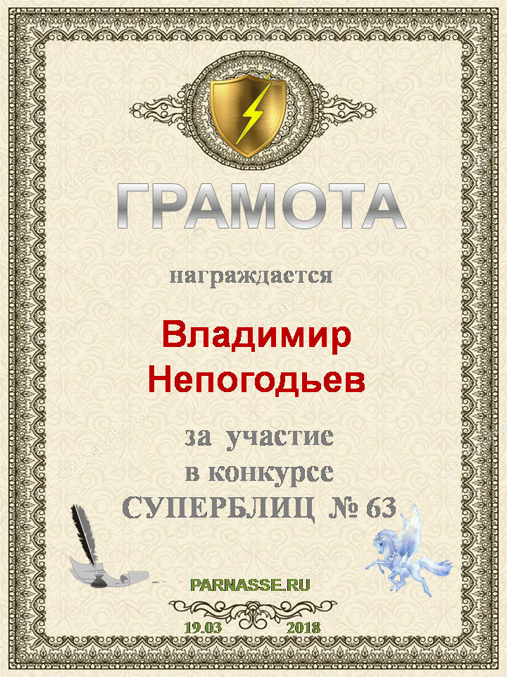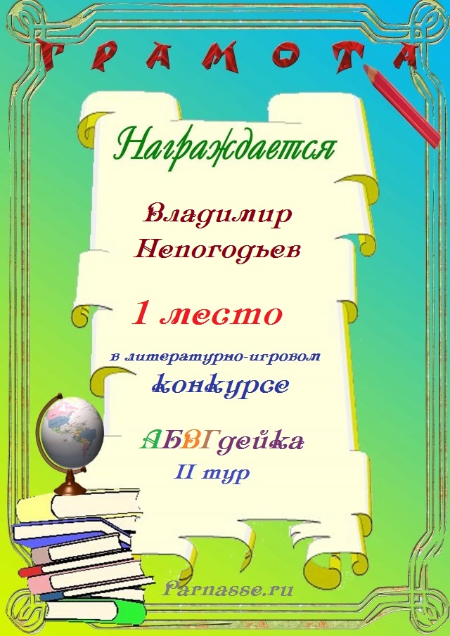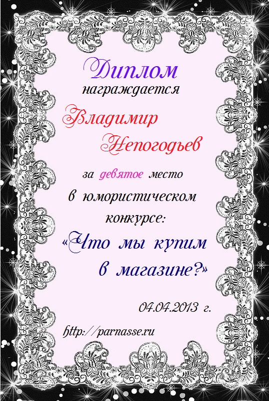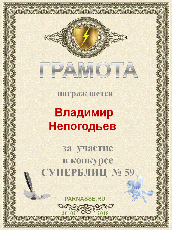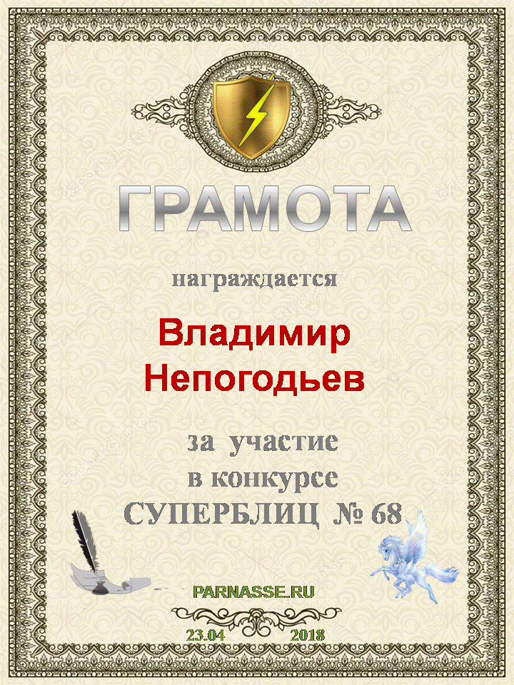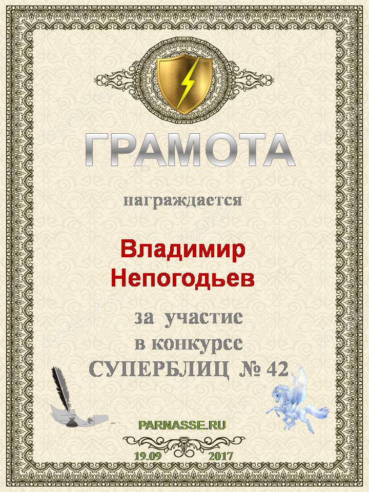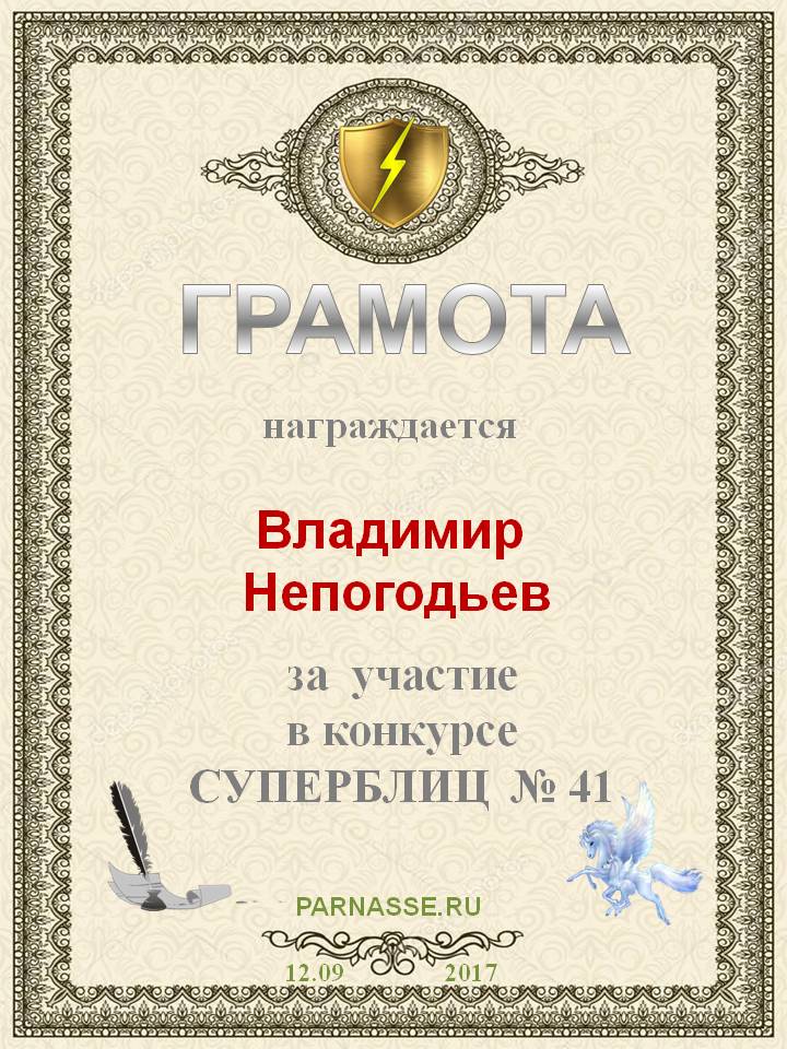 Грамота за 5 место в конкурсе частушек № 8++. Поздравляю, Владимир!
