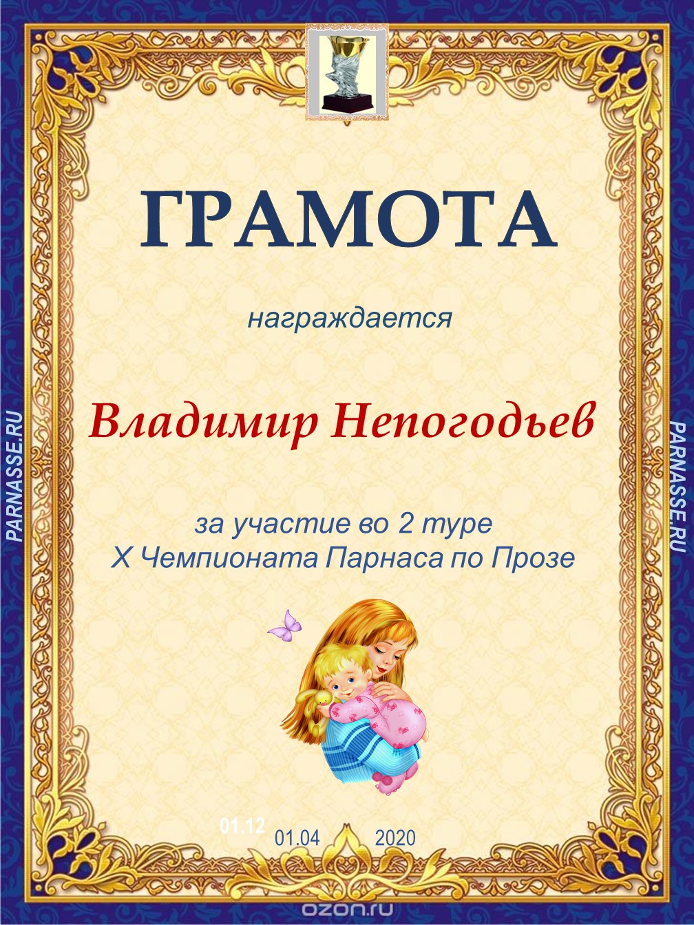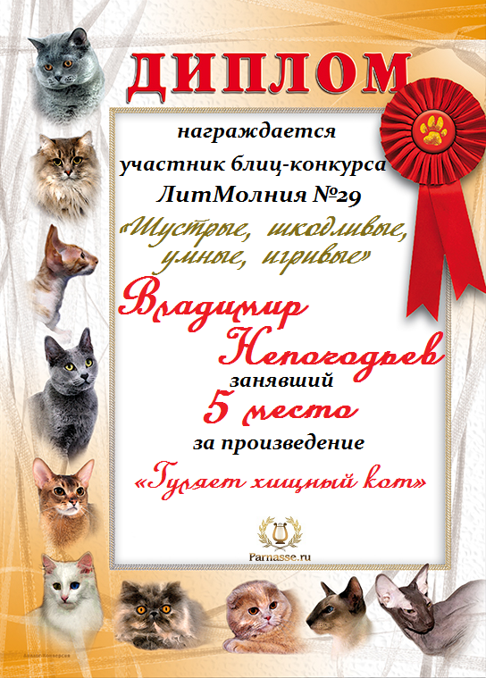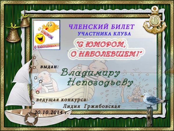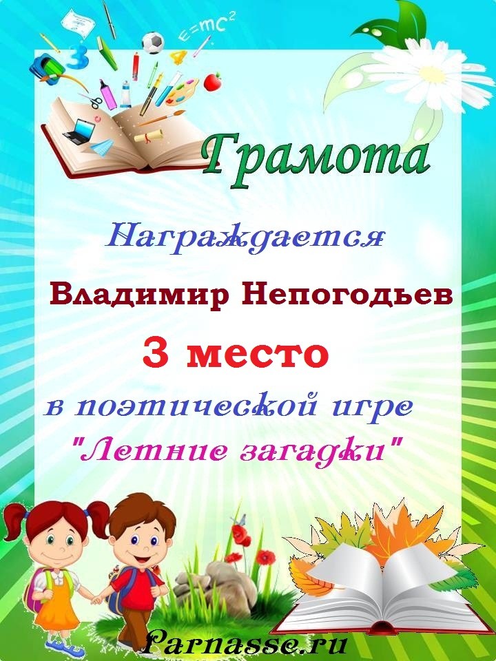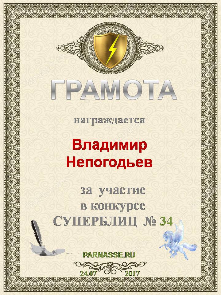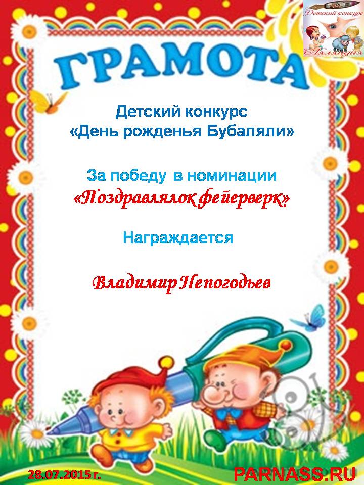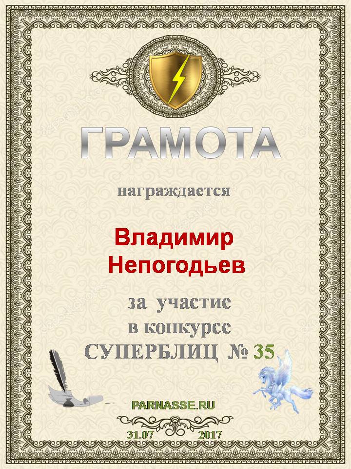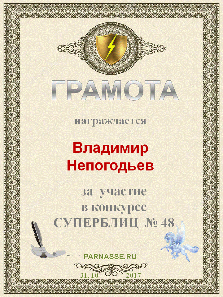 Грамота за 5 место в конкурсе частушек № 8++. Поздравляю, Владимир!