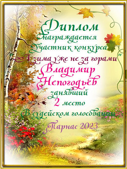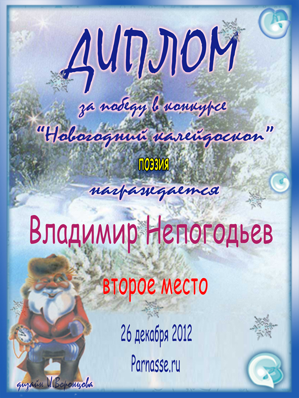 Поздравляю с победой - 2 местом в номинации Поэзия! Желаю счастья, благополучия и здоровья в наступающем году!