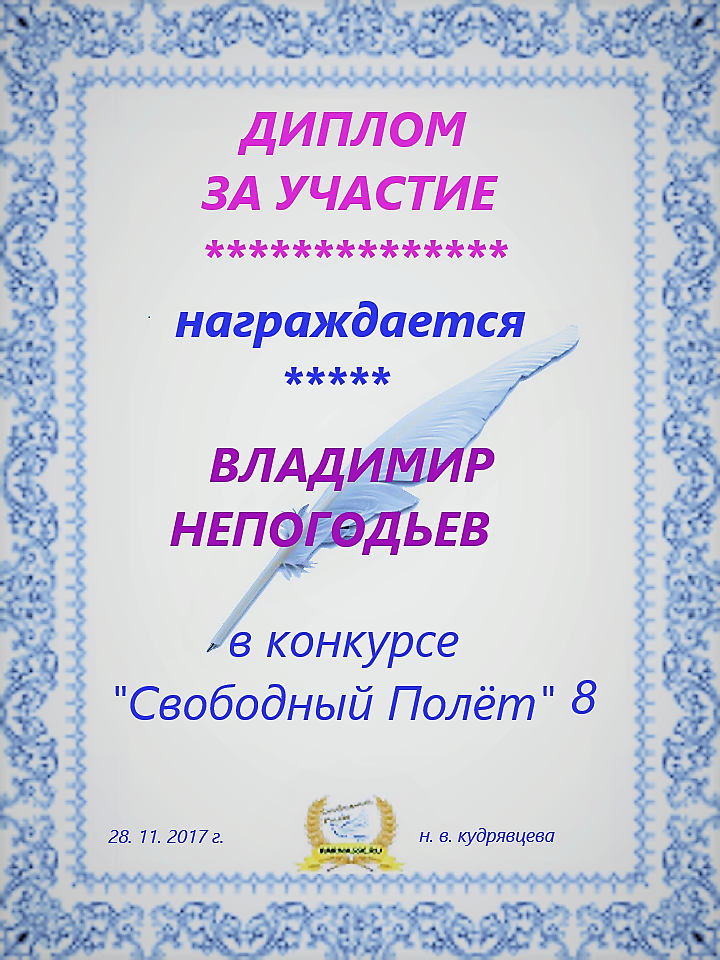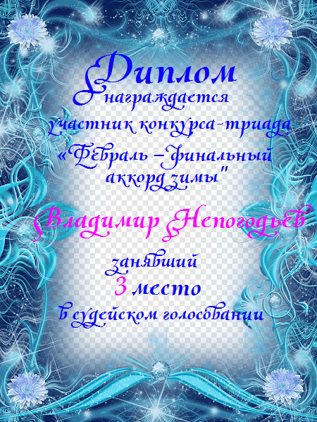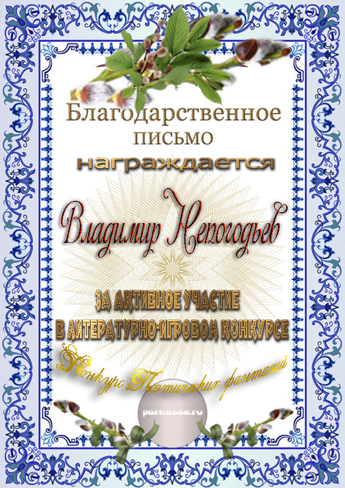 СПАСИБО ВОЛОДЯ ЗА ПОСТОЯННОЕ УЧАСТИЕ В НАШИХ КОНКУРСАХ!