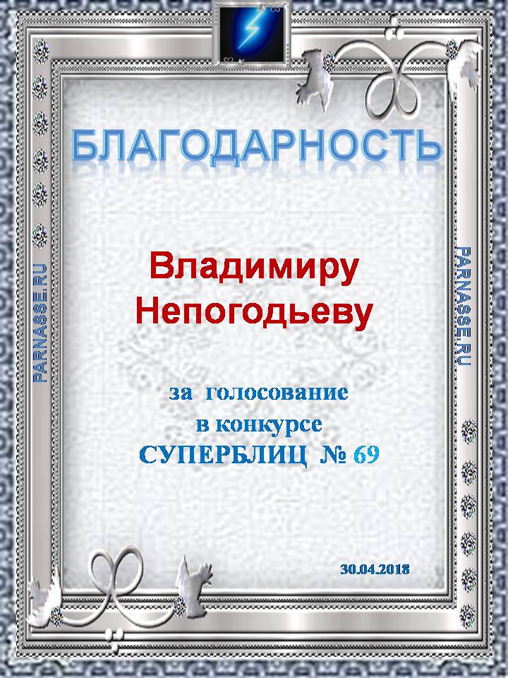 Благодарность за активное голосование в 69 конкурсе СУПЕРБЛИЦА!СПАСИБО БОЛЬШОЕ!