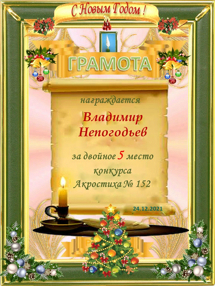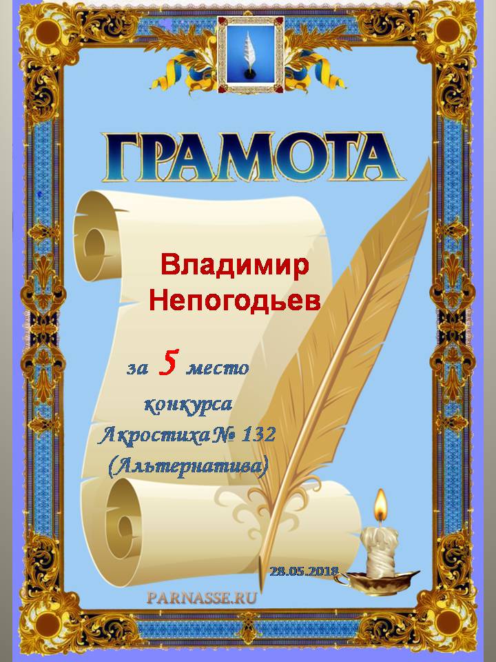 Грамота за 5 место в 132 конкурсе АКРОСТИХА (Альтернатива)! ПОЗДРАВЛЯЮ!
