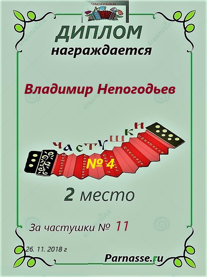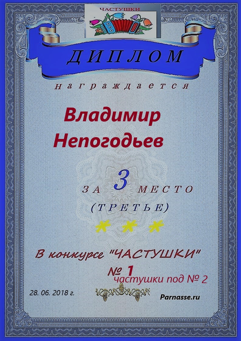 ВЛАДИМИР, ПОЗДРАВЛЯЮ ВАС С 4 МЕСТОМ В КОНКУРСЕ ЧАСТУШЕК №9++