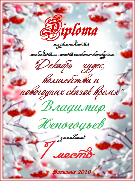 Первое место по решению Администрации и Главного судьи «Декабрь - время чудес, волшебства и новогодних сказок»