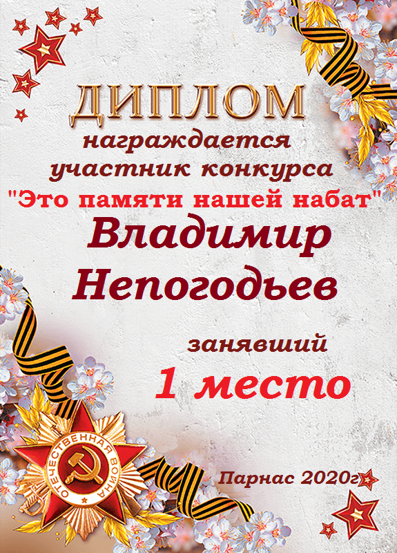 Диплом победителя конкурса "О Победе с гордостью, о павших с почтением"