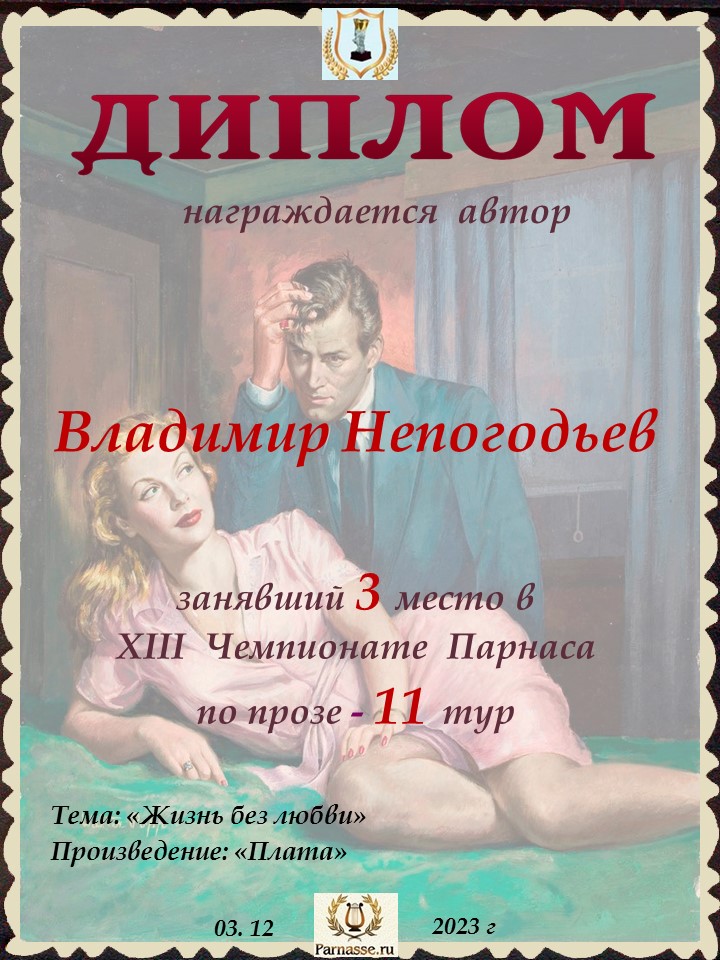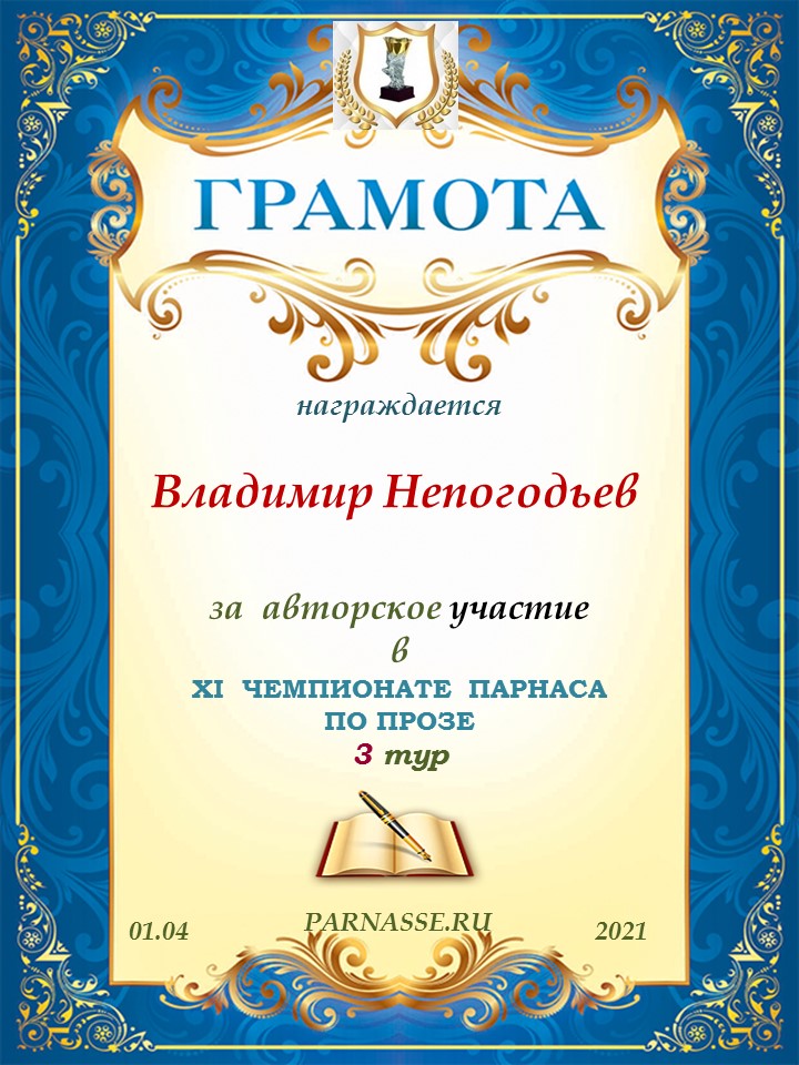 ![]() Медаль автора - участника 11 тура XV Чемпионата Парнаса по прозе