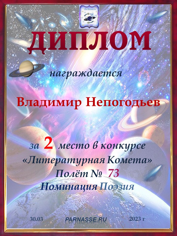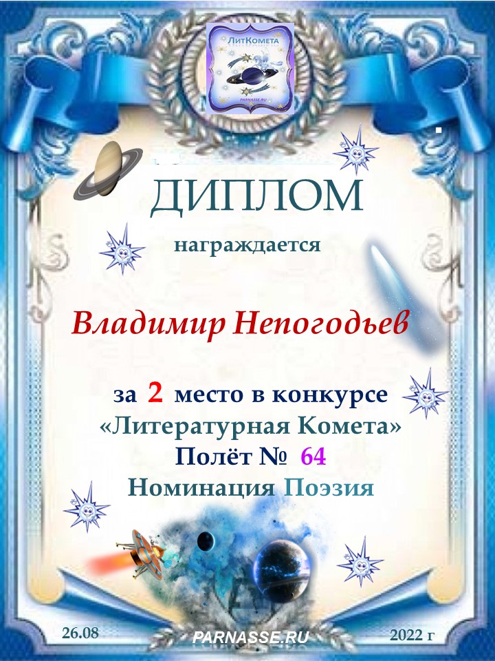 ![]() Медаль за 2 место в конкурсе "ЛитКомета - Полёт № 90"