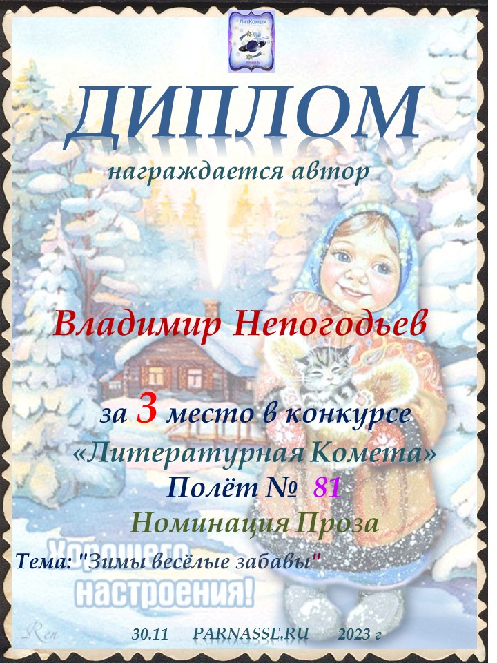 ДИПЛОМ ЗА ТРЕТЬЕ МЕСТО В КОНКУРСЕ "ЛЮБОПЫТСТВО". Проза