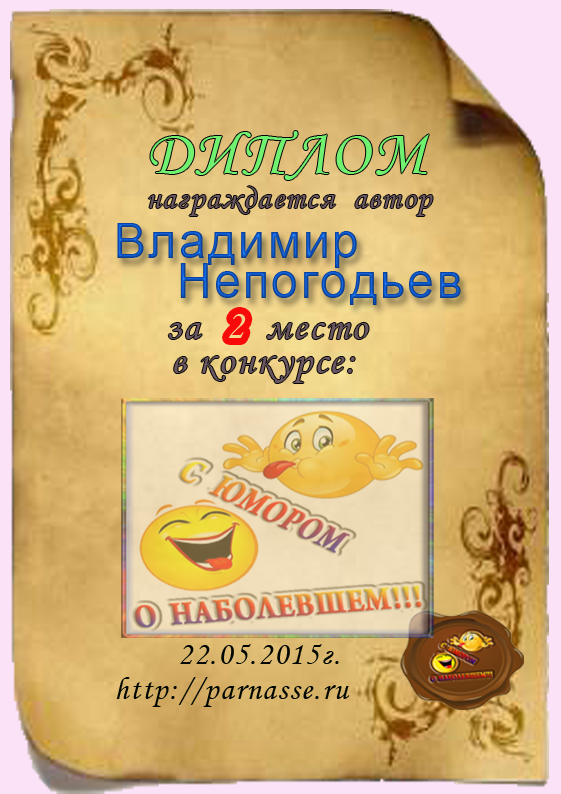 Диплом за 2 место в конкурсе " С юмором. о наболевшем"