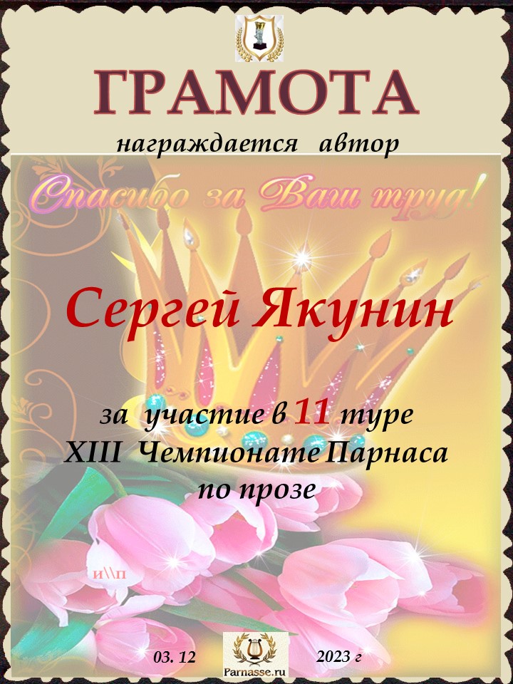 Спасибо за творческое участие в 11 туре XIII Чемпионата Парнаса по прозе!