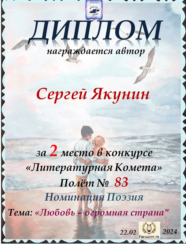 Поздравляю с занятым 2 местом в конкурсе "ЛитКомета - Полёт № 83" - Номинация Поэзия!