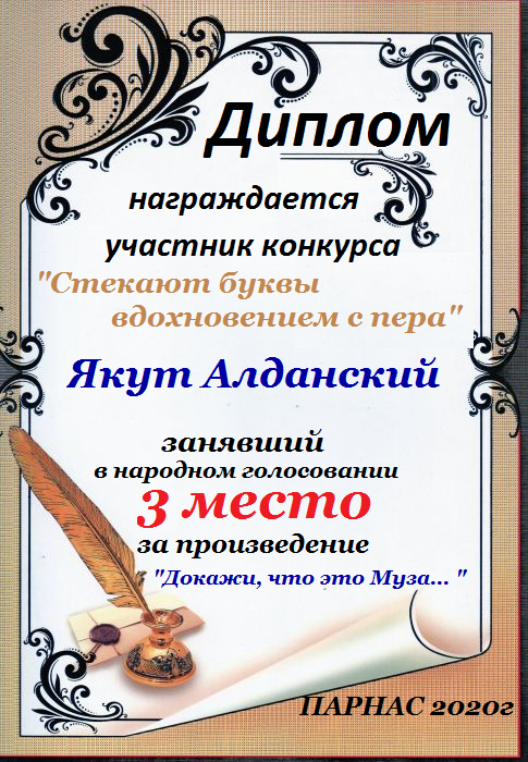 Третье место по итогам конкурса " Вдохновение – росчерк пера", народное голосование. Поздравляем с прекрасной победой!